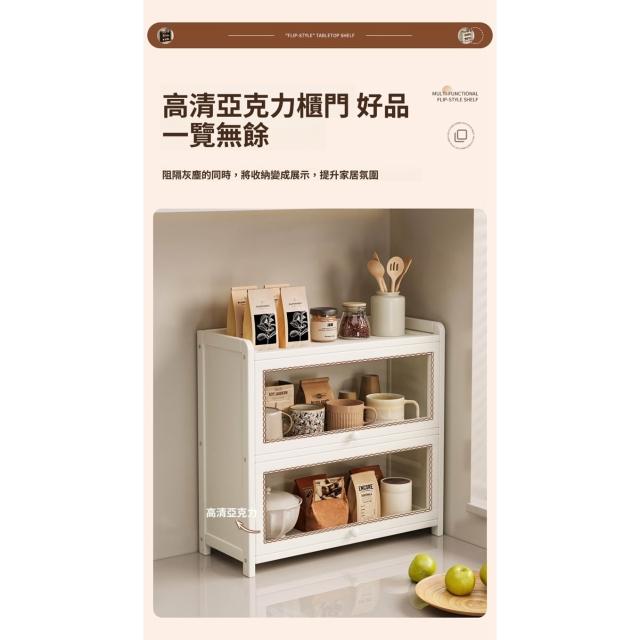 Quality 聚家收納儲物密封櫃 桌面置物架 日用品儲物架 杯子置物架 檯面整理櫃(多層置物 加厚材質 翻蓋式亞克力板)