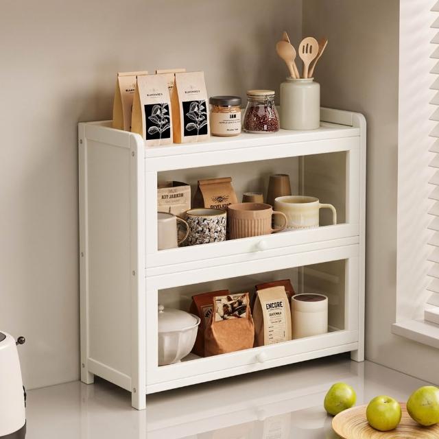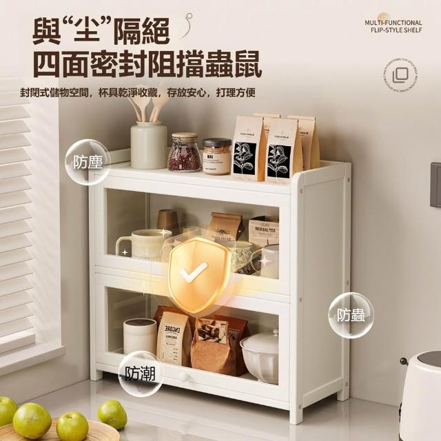 Quality 聚家收納儲物密封櫃 桌面置物架 日用品儲物架 杯子置物架 檯面整理櫃(多層置物 加厚材質 翻蓋式亞克力板)