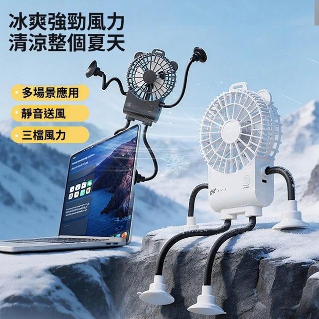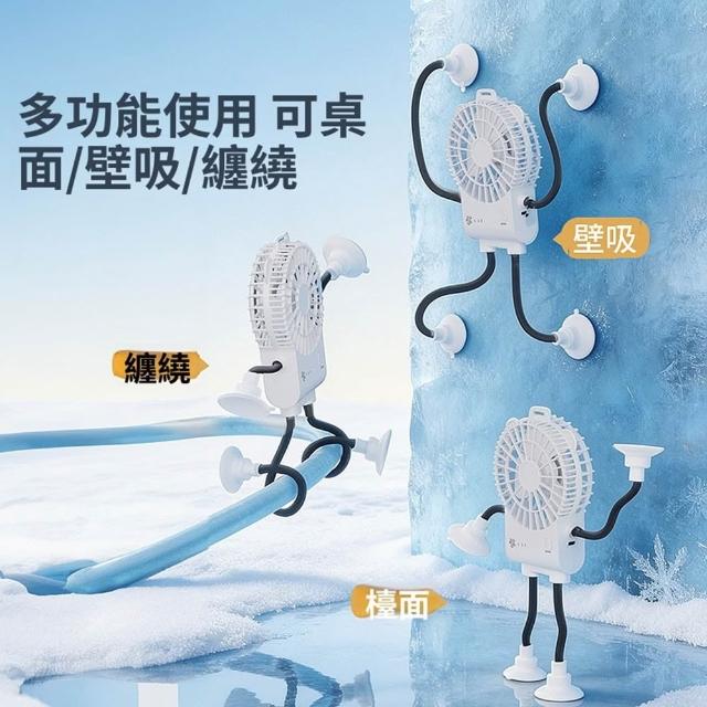 Quality 聚家迷你手持風扇 吸盤風扇 纏繞風扇 便攜USB充電風扇(三擋風速 渦輪扇葉設計 多種固定模式)