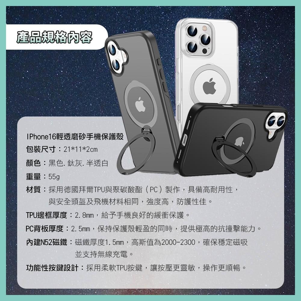 CoRhea 科瑞亞iPhone 16 輕透磨砂手機保護殼 Magsafe/360度炫音支架/四角防摔/螢幕加高 現貨