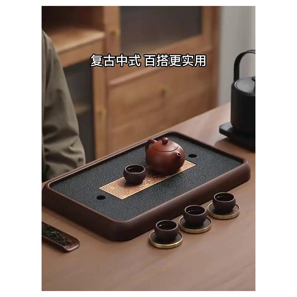 茶盤家用小型茶托盤新款仿烏金石新中式簡約茶台海瀝水乾泡台(茶具 茶盤 黑檀木茶盤 泡茶盤 竹茶盤 茶盤托盤 木茶盤 重竹茶盤)