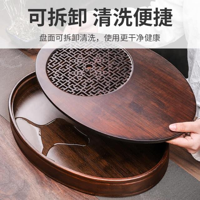 四季風家居 新款茶盤家用小型茶台竹茶托盤瀝儲水茶具圓形辦公室實木茶海茶具 茶盤 黑檀木茶盤 泡茶盤 竹茶盤 茶盤托盤