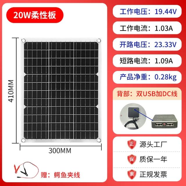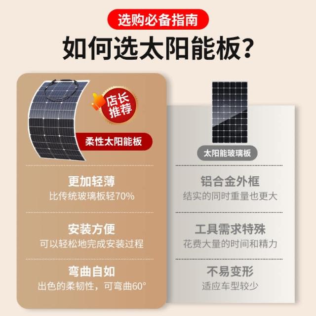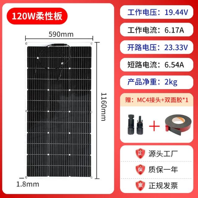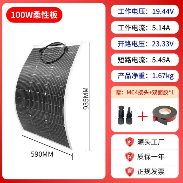 四季風家居 柔性太陽能板100W房車充電板12V光伏車載太陽能發電系統
