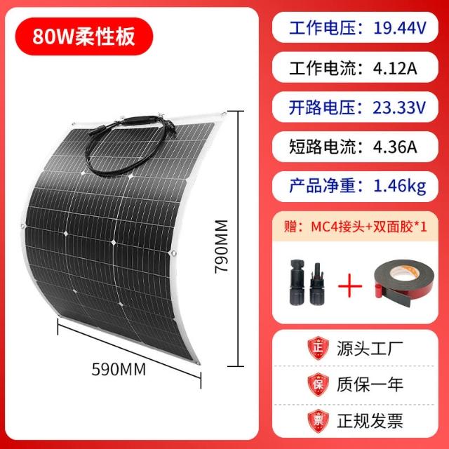 四季風家居 柔性太陽能板100W房車充電板12V光伏車載太陽能發電系統