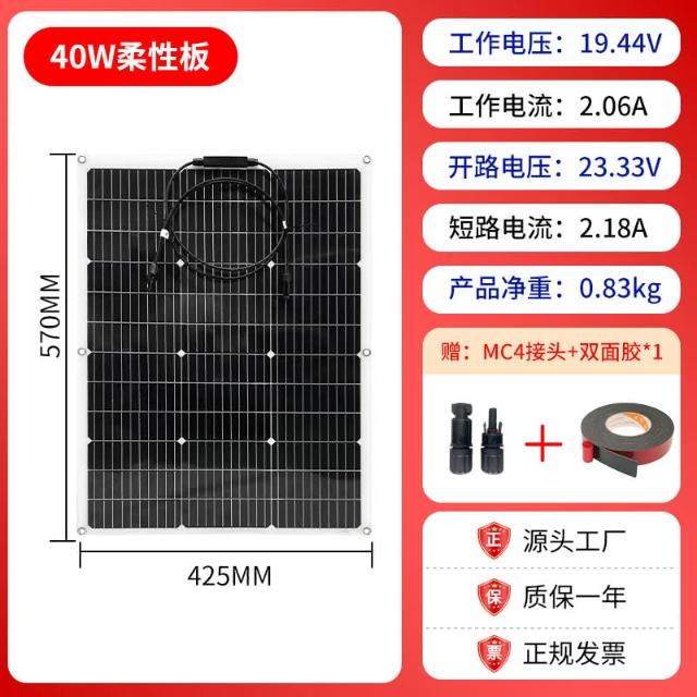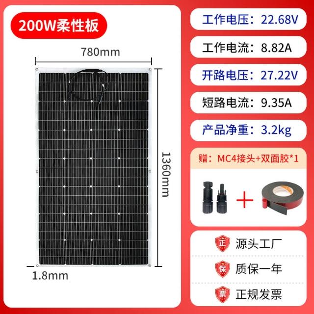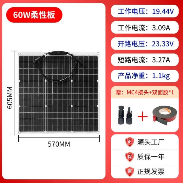 四季風家居 柔性太陽能板100W房車充電板12V光伏車載太陽能發電系統