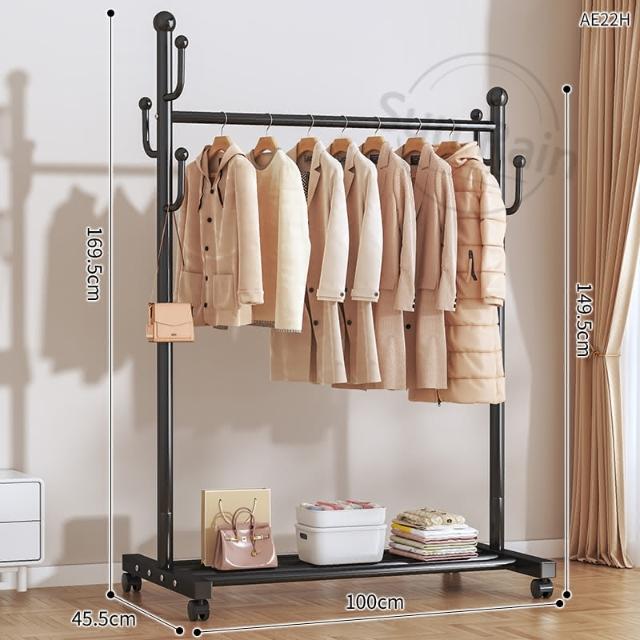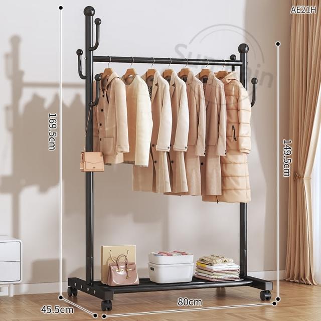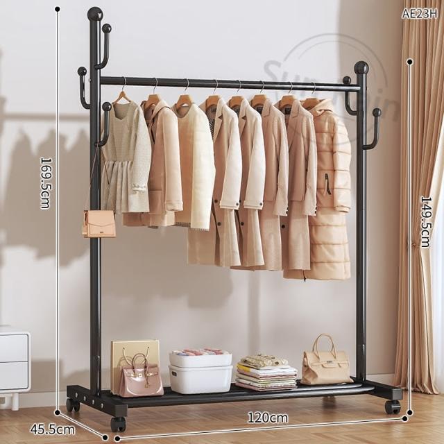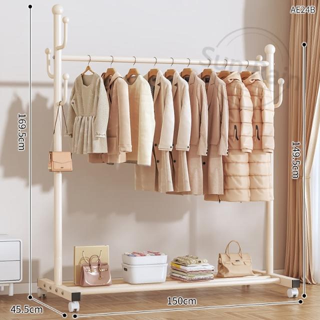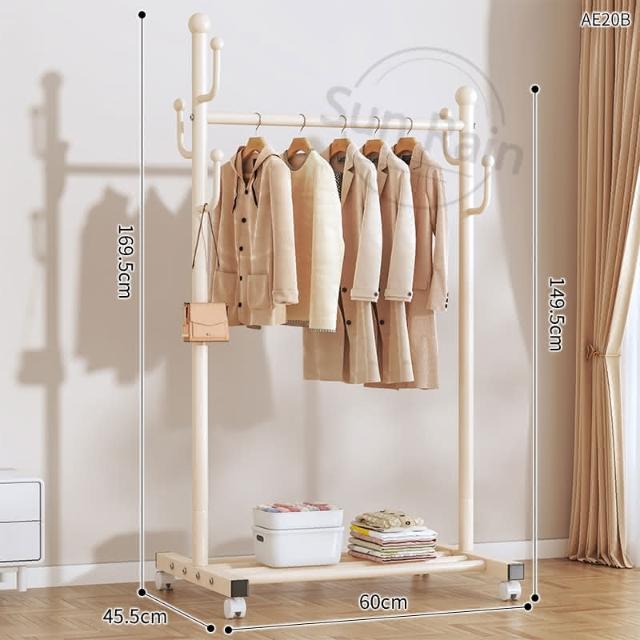 四季風家居 晾衣架落地臥室家用室內掛衣架陽台涼曬掛衣桿宿易移動衣帽架曬衣