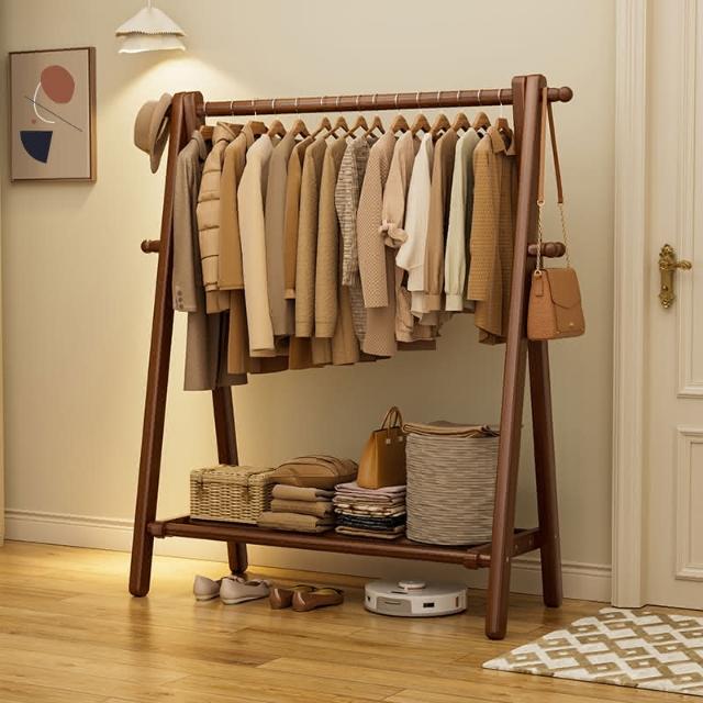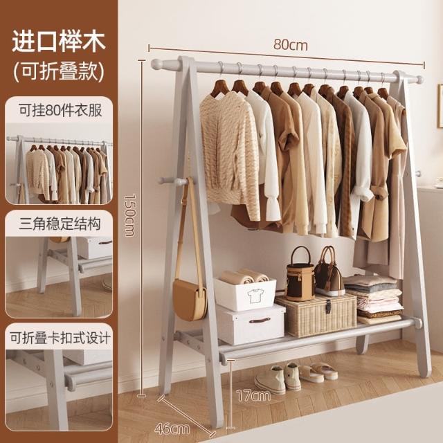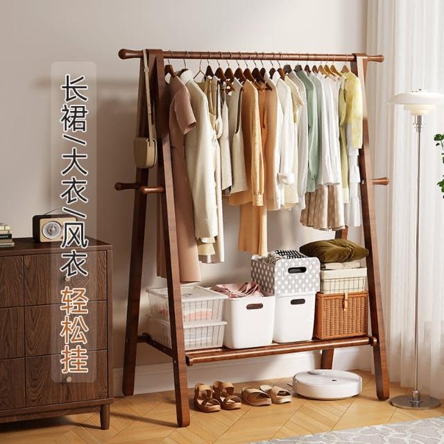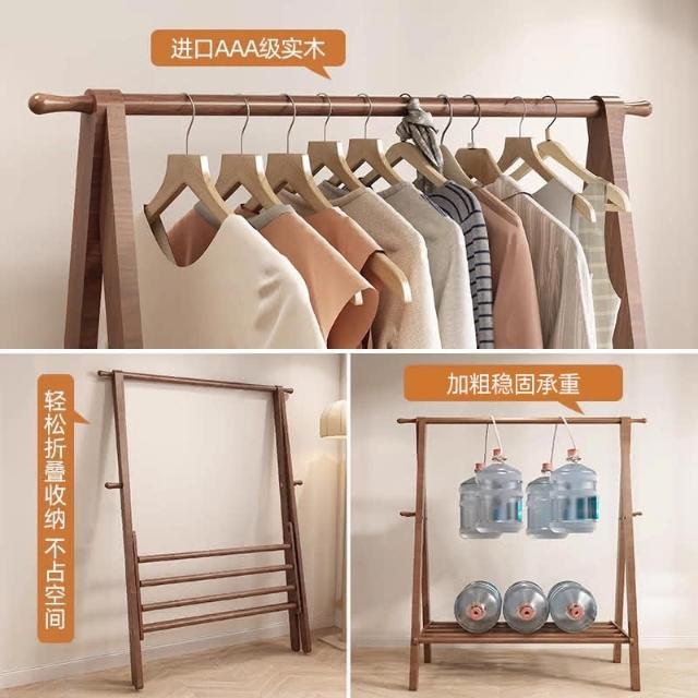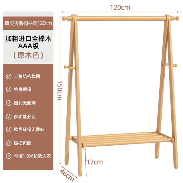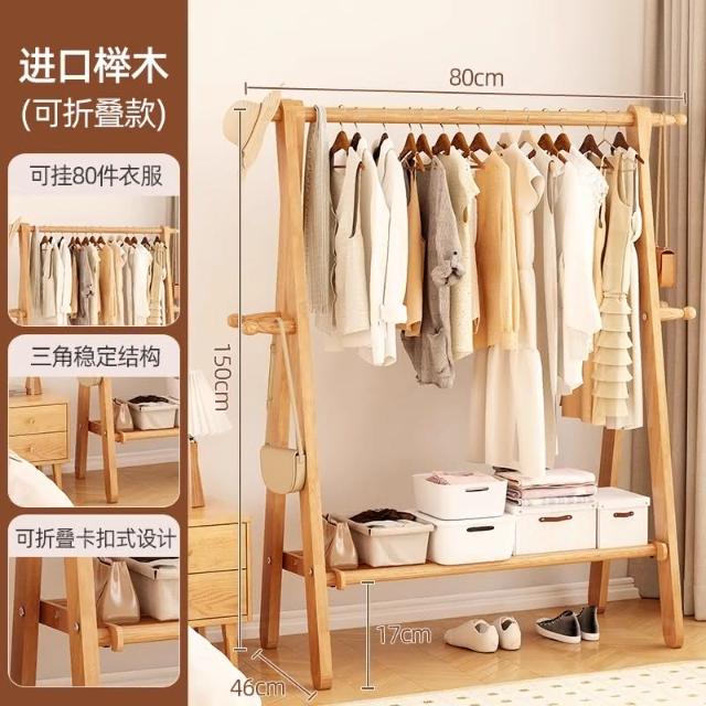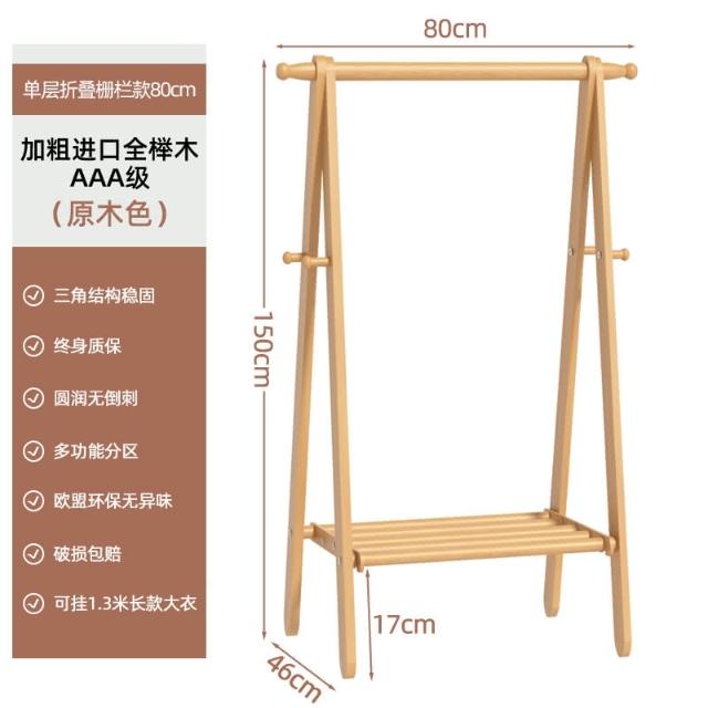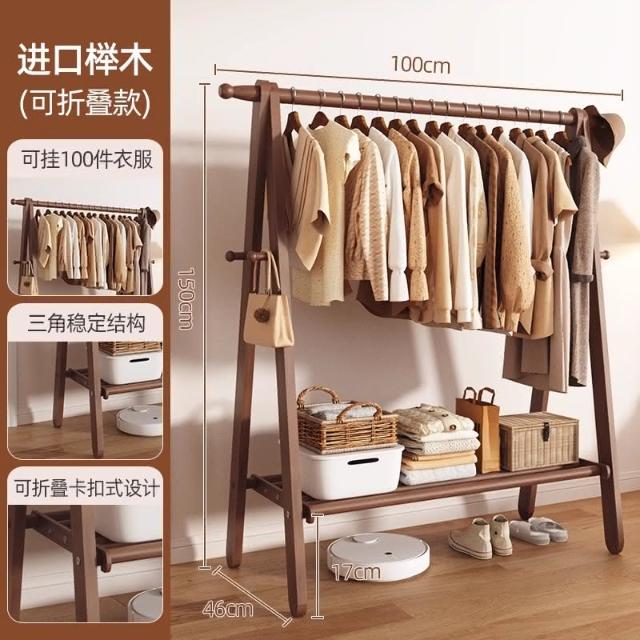 四季風家居 全實木掛衣架落地式臥室家用衣帽架房間櫸木晾衣架室內簡易置衣架