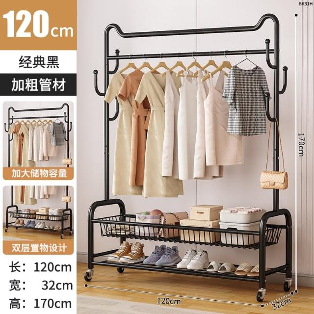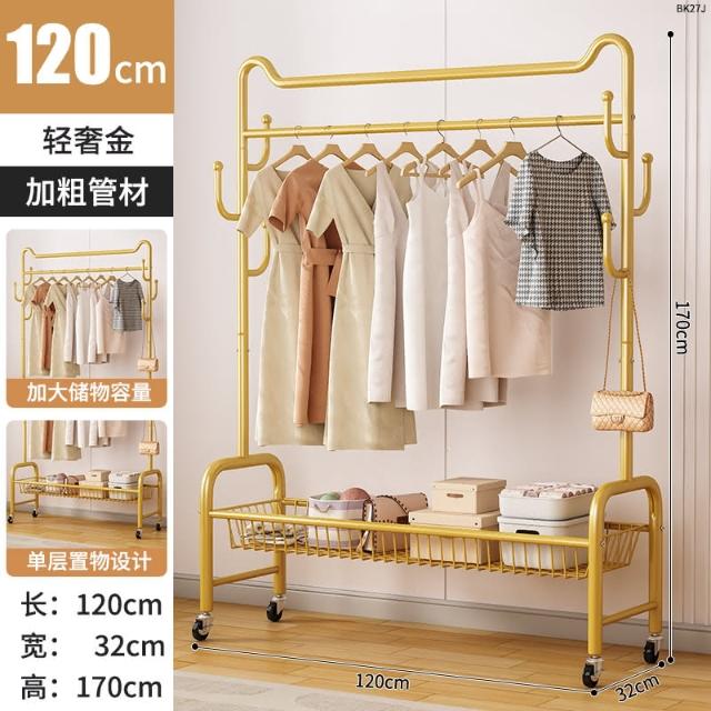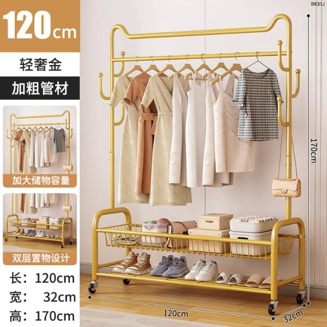 四季風家居 輕奢貓耳臥室落地衣帽架家用掛衣桿加厚加粗室內收納置物架神器