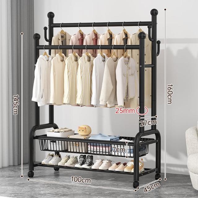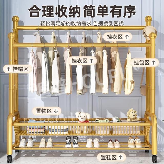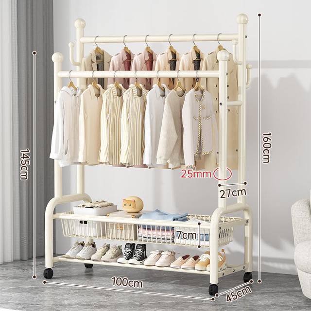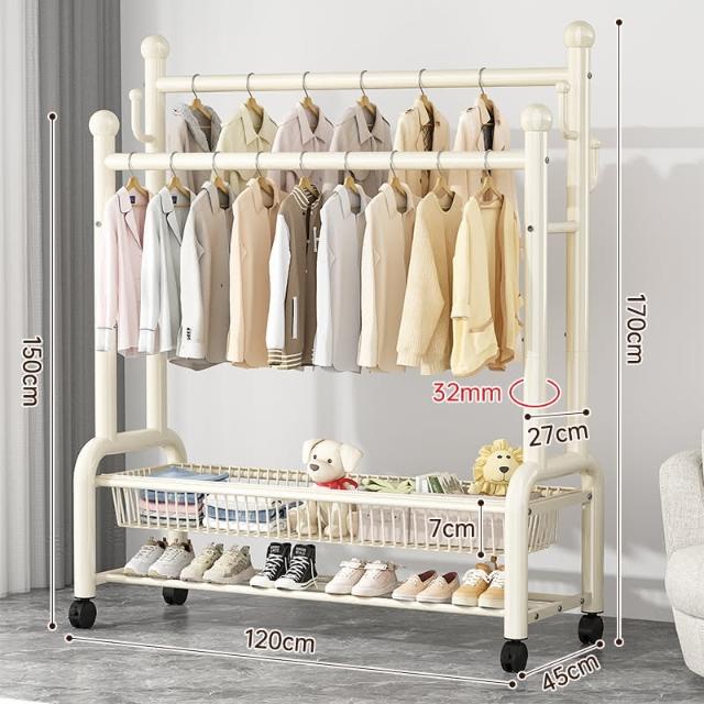 四季風家居 巨粗32管 衣帽架臥室雙桿晾衣架落地陽台掛衣加粗加厚室內家用
