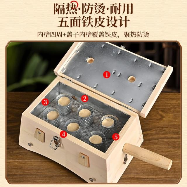 四季風家居 艾灸盒實木製隨身灸家用全身通用艾盒六孔腰部腹部木質懸灸器具箱
