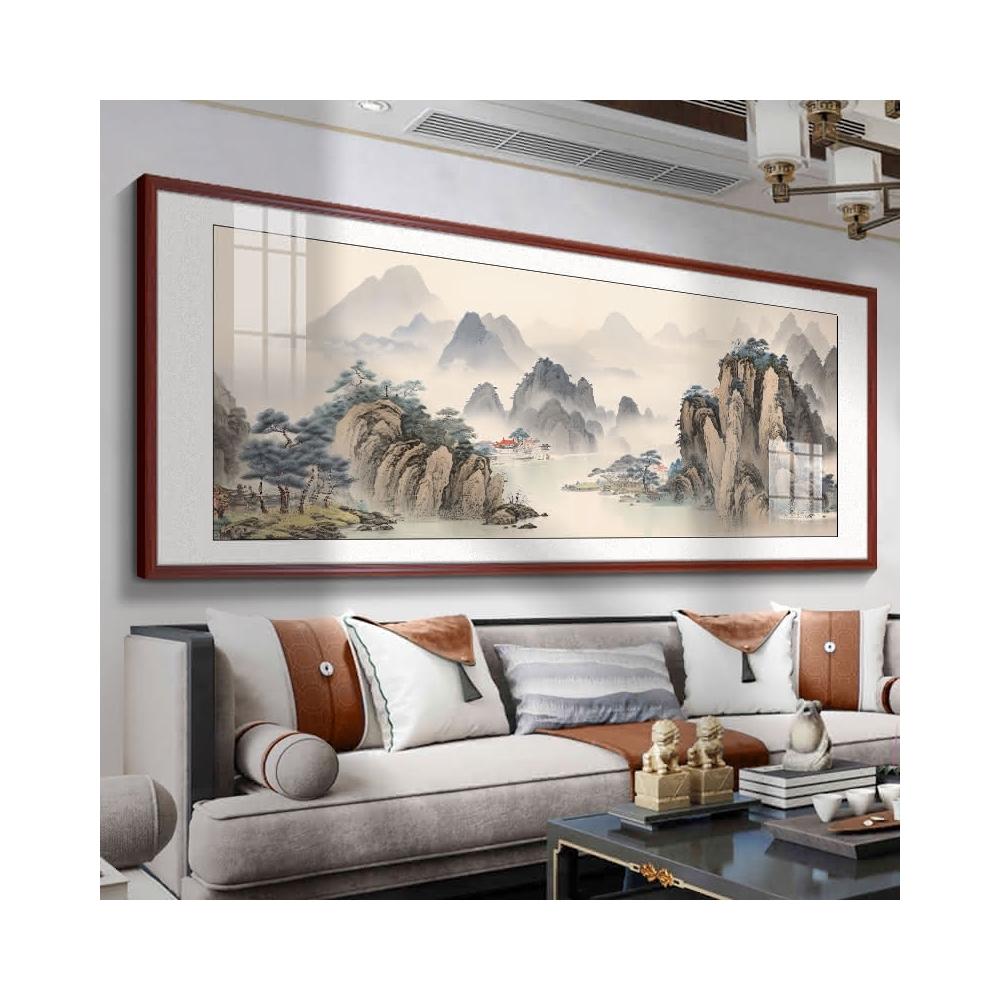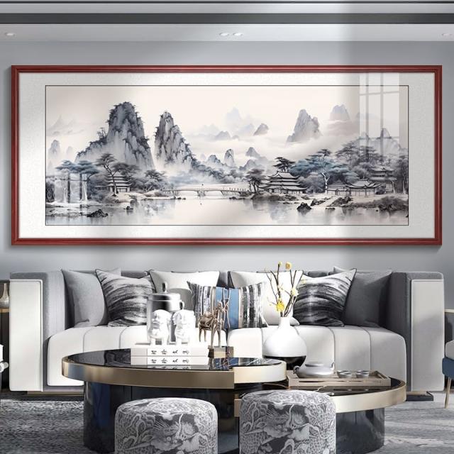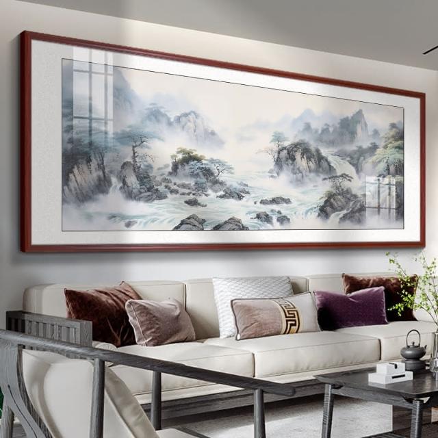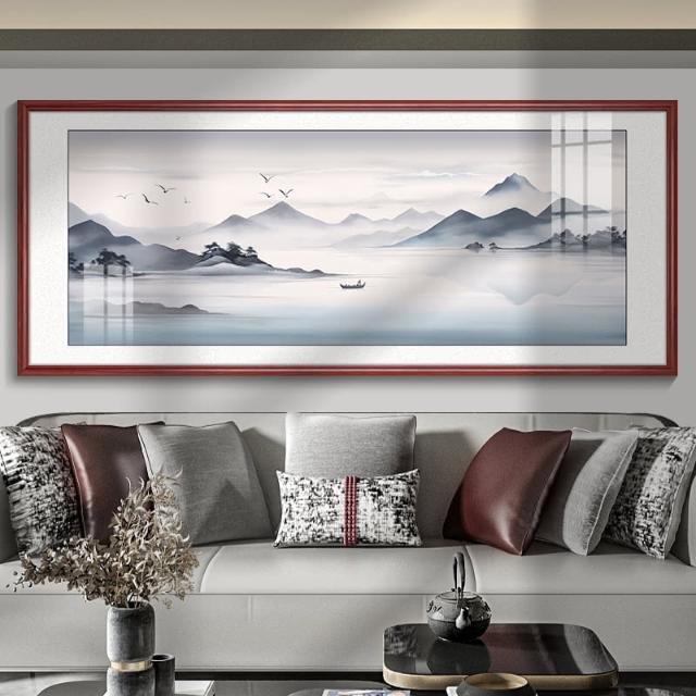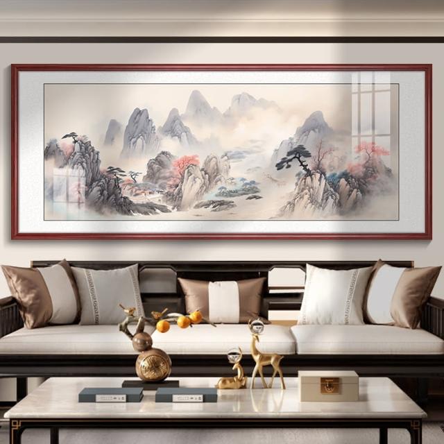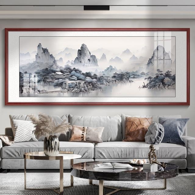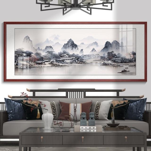四季風家居 風景山水畫客廳掛畫新中式沙發背景牆裝飾畫茶室辦公室壁畫墨畫