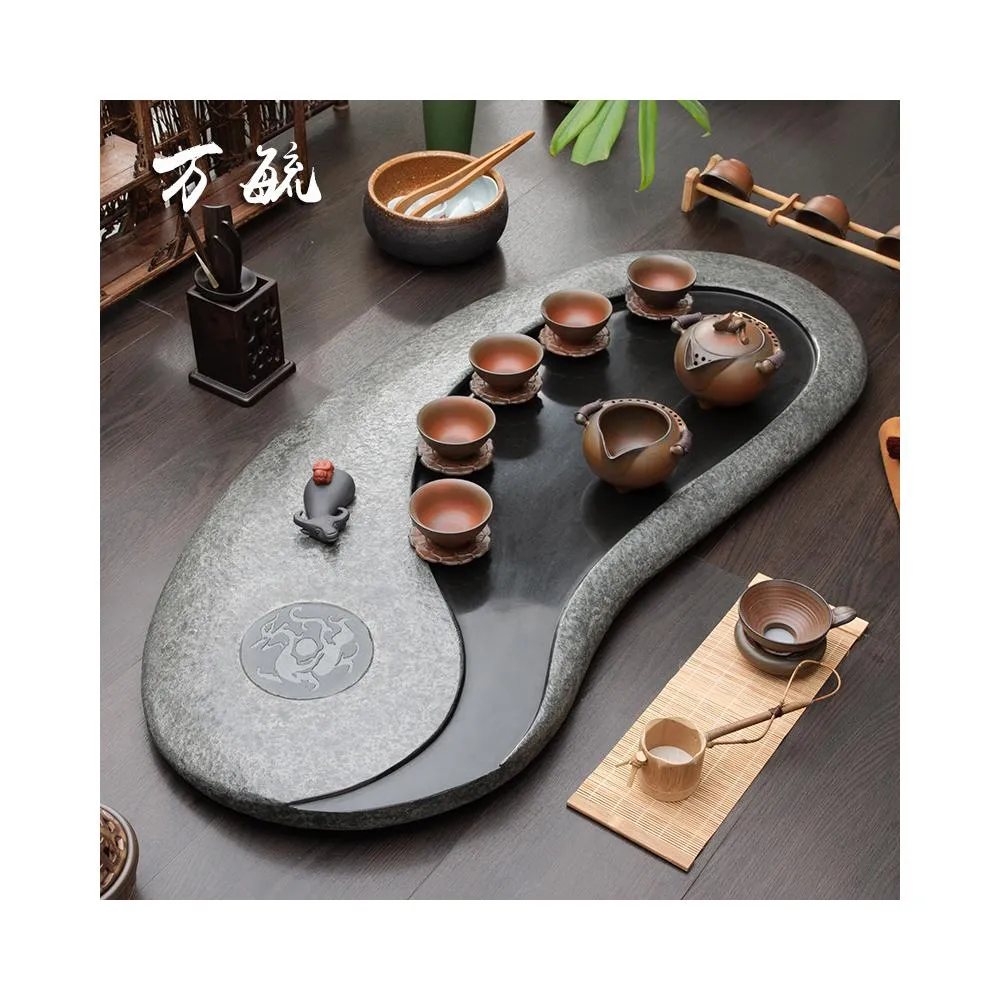 四季風家居 茶盤烏金石天然整塊石頭創意中式太極大茶台家用辦公茶海茶具托盤
