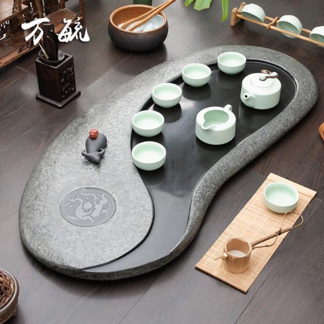 四季風家居 茶盤烏金石天然整塊石頭創意中式太極大茶台家用辦公茶海茶具托盤