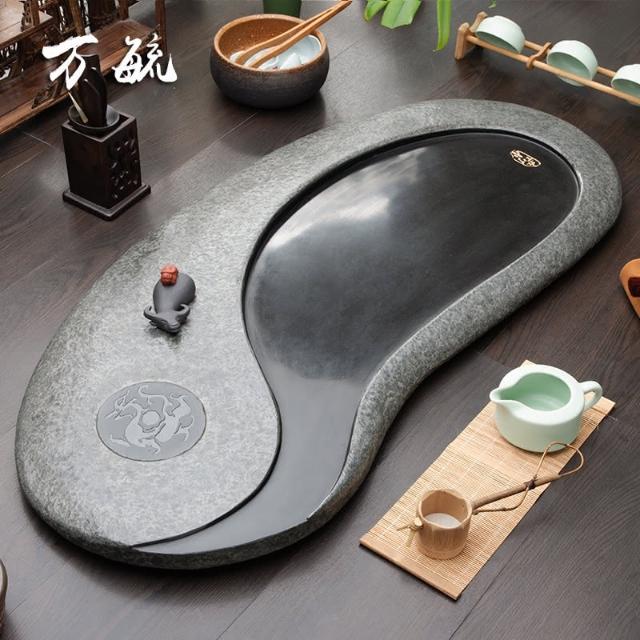 四季風家居 茶盤烏金石天然整塊石頭創意中式太極大茶台家用辦公茶海茶具托盤