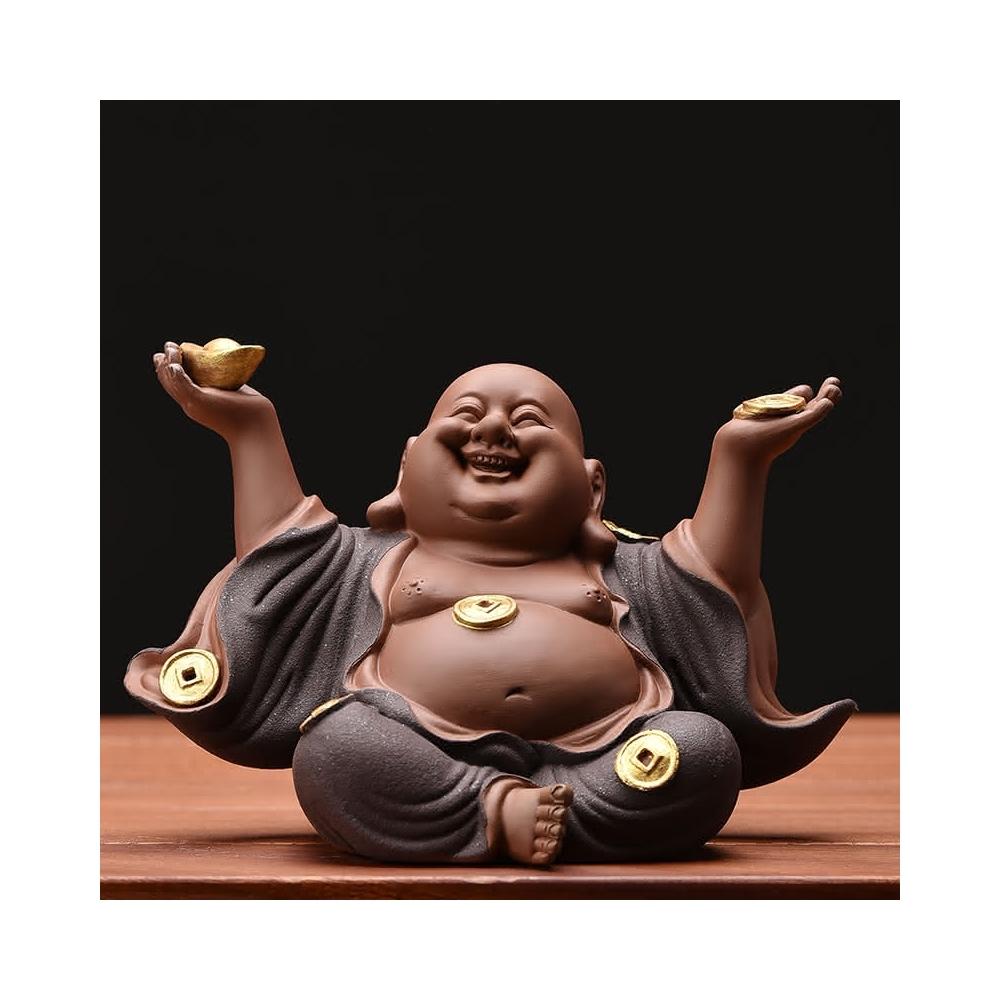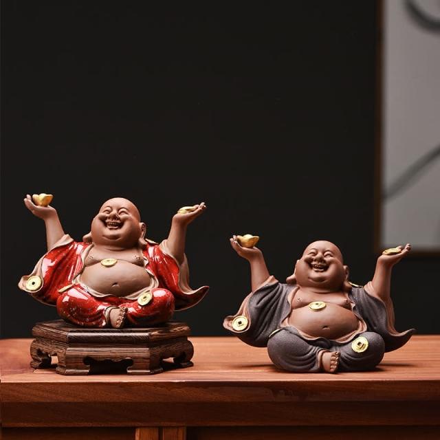 四季風家居 創意紫砂招財彌勒佛茶寵精品陶瓷大肚笑佛茶桌茶台禪意佛像擺件