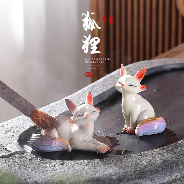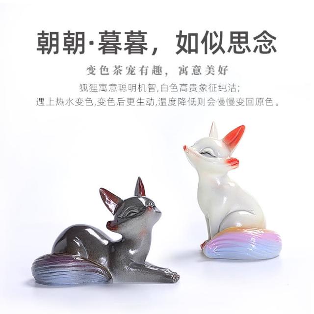 四季風家居 變色小狐狸茶寵可愛個性茶寶茶桌上的小擺飾茶道茶玩茶具精品可養