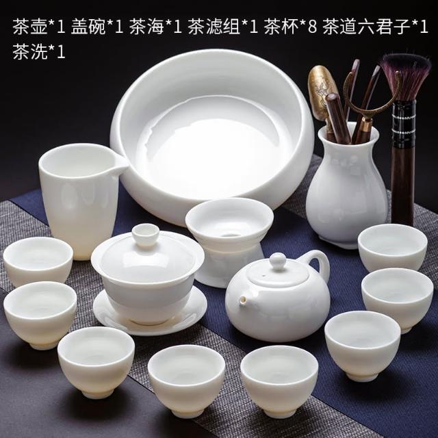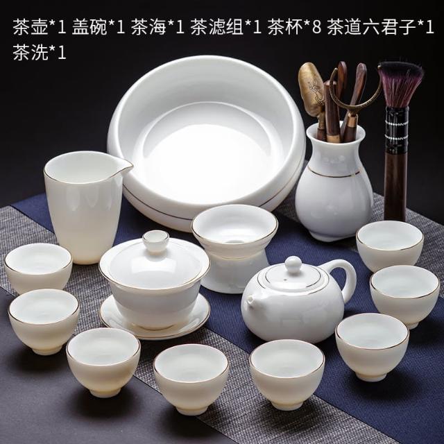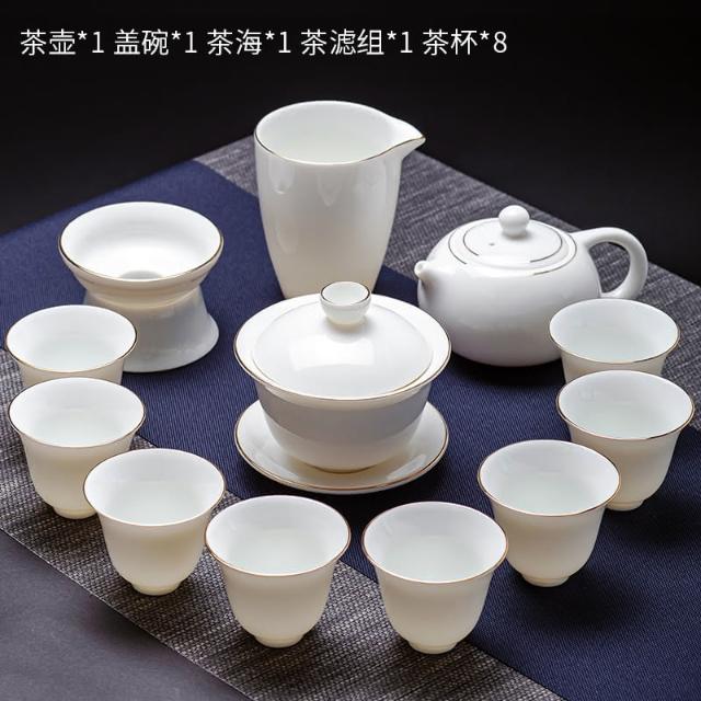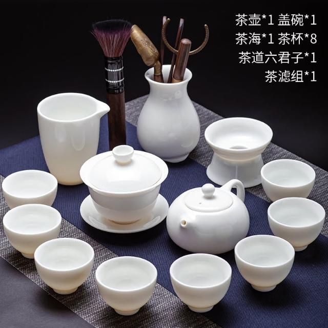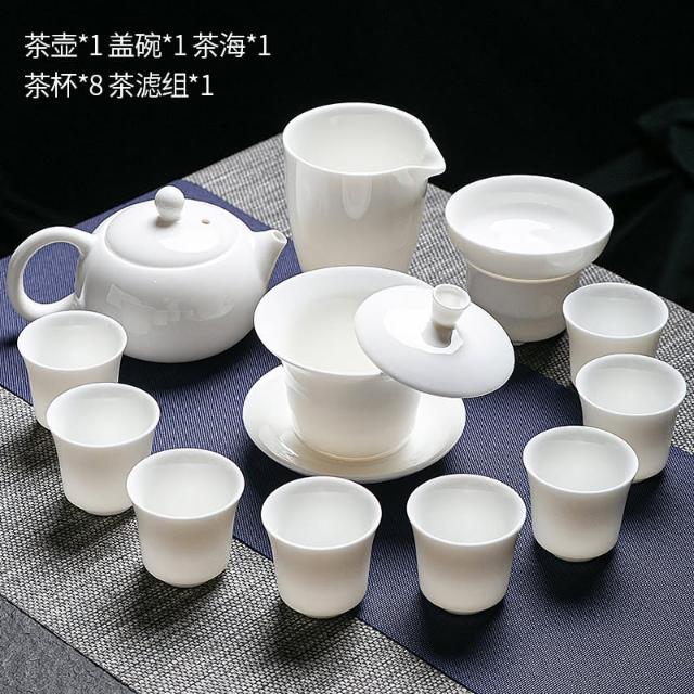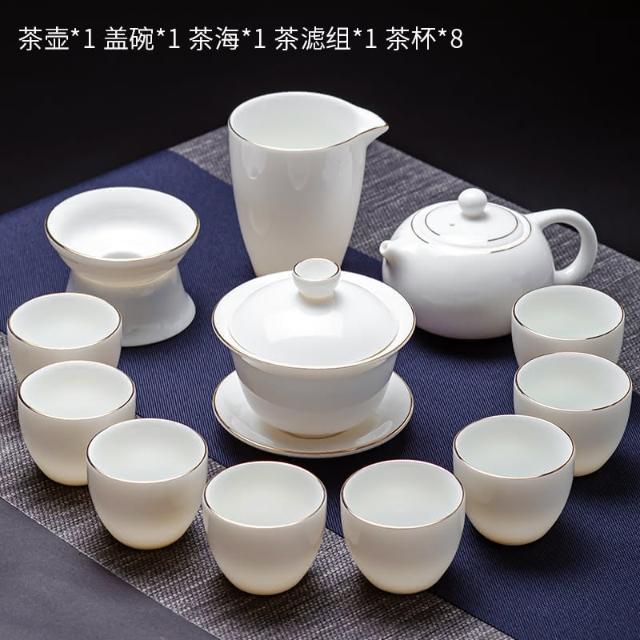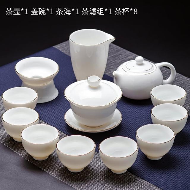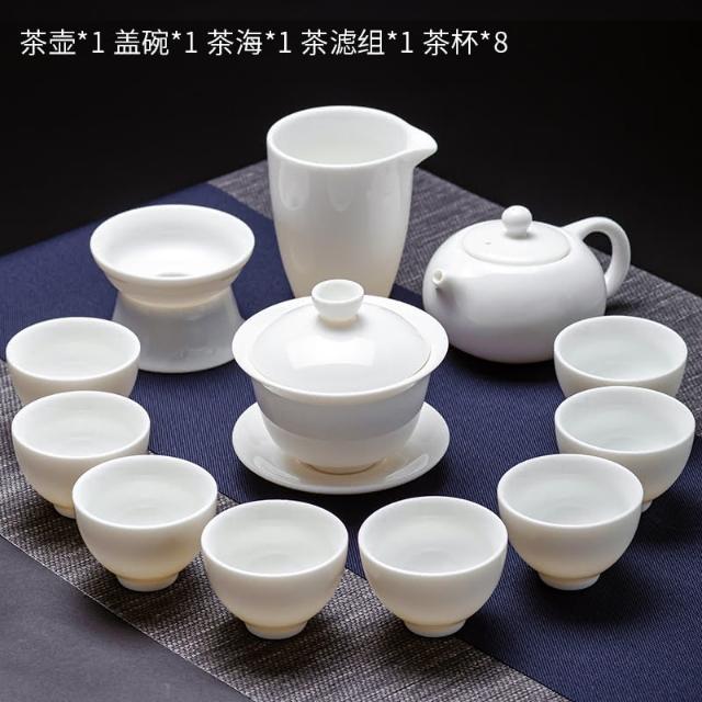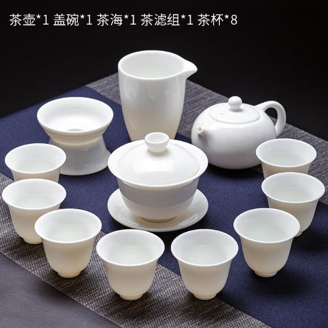 四季風家居 羊脂玉白瓷功夫茶具套裝家用辦公泡茶壺蓋碗茶杯陶瓷高檔輕奢送禮