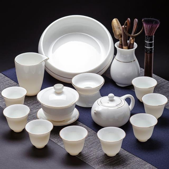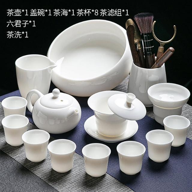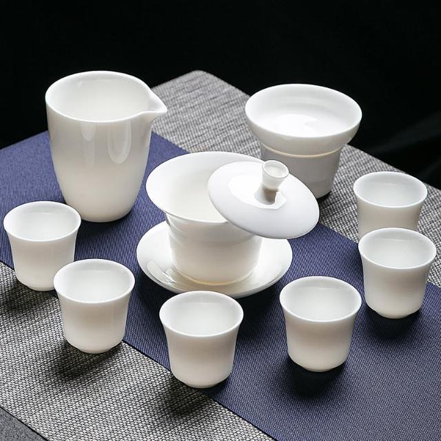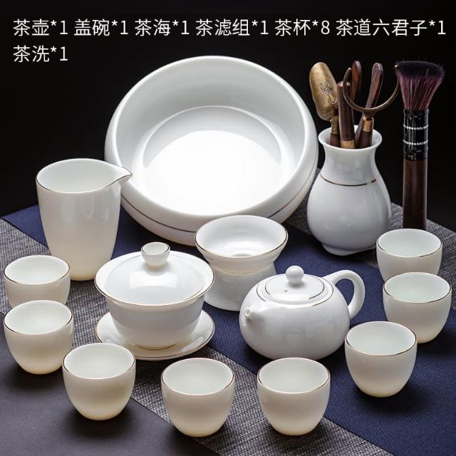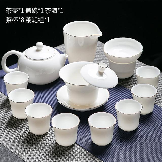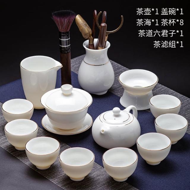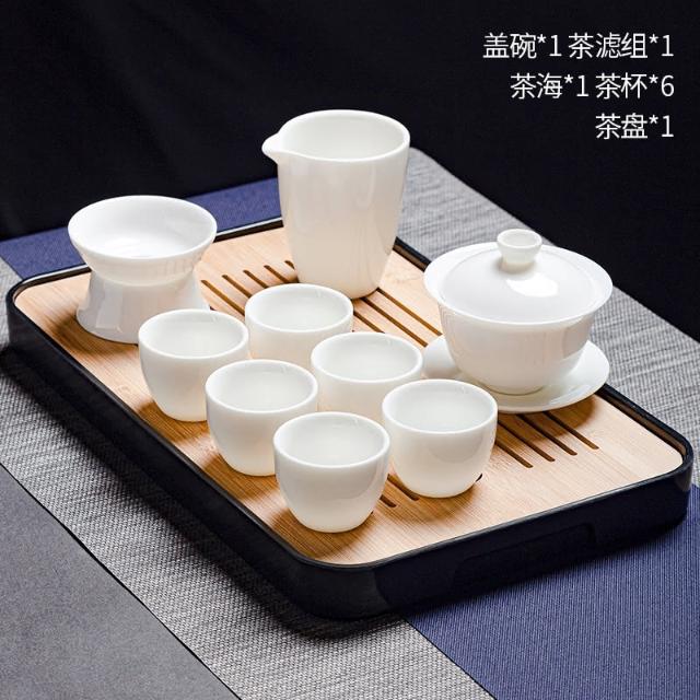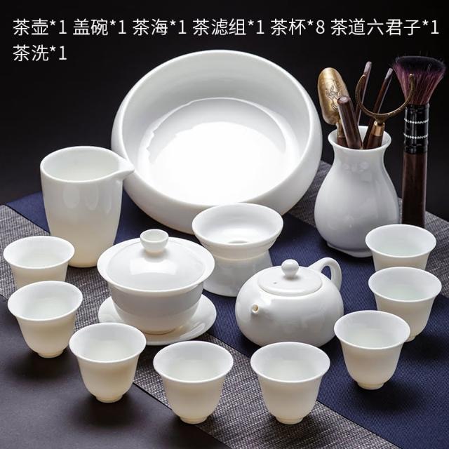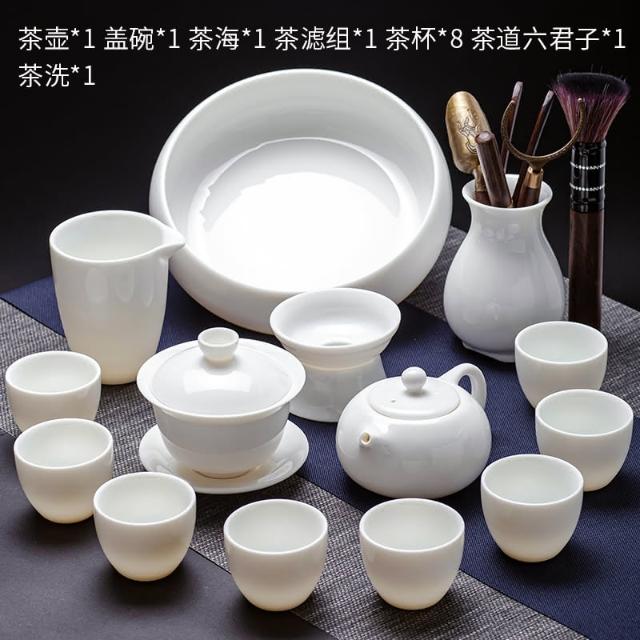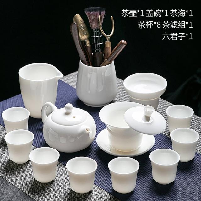 四季風家居 羊脂玉白瓷功夫茶具套裝家用辦公泡茶壺蓋碗茶杯陶瓷高檔輕奢送禮