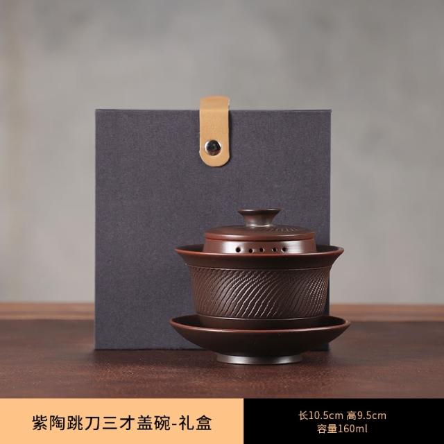 四季風家居 建水紫陶茶具茶碗全手工跳刀三才蓋碗高級泡茶碗防燙帶蓋家用茶具