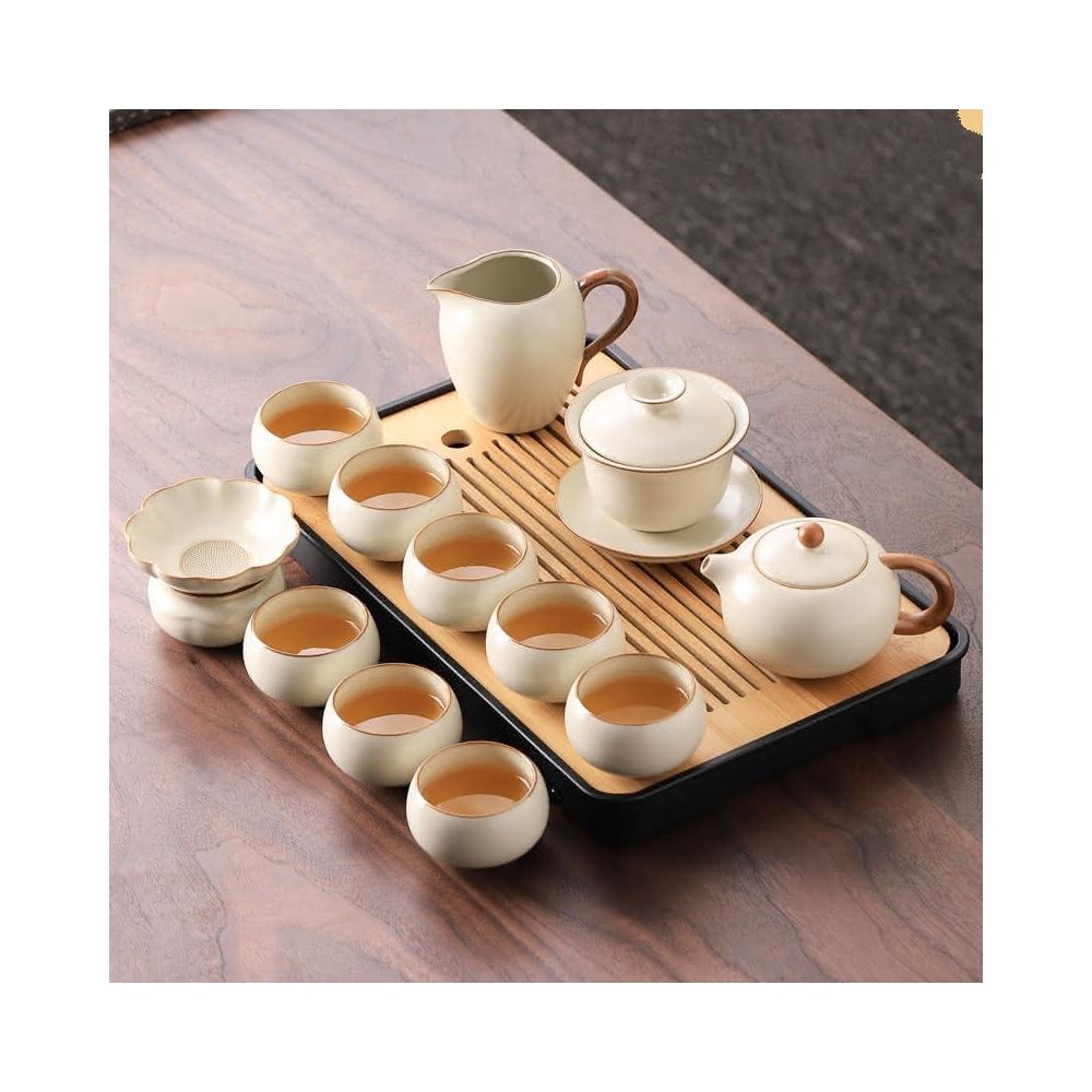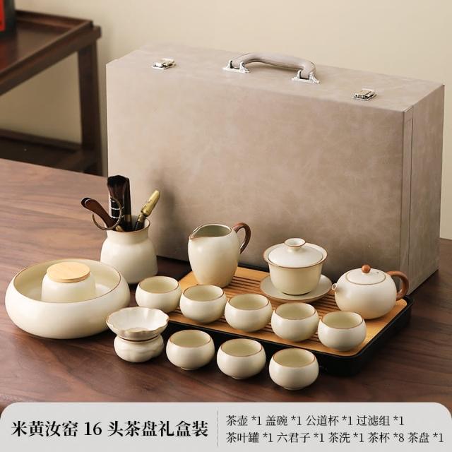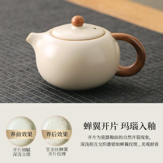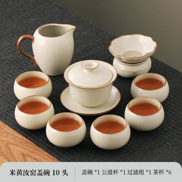 四季風家居 汝窯功夫茶具組新喝茶器家用泡茶陶瓷蓋碗茶壺茶杯整套