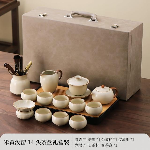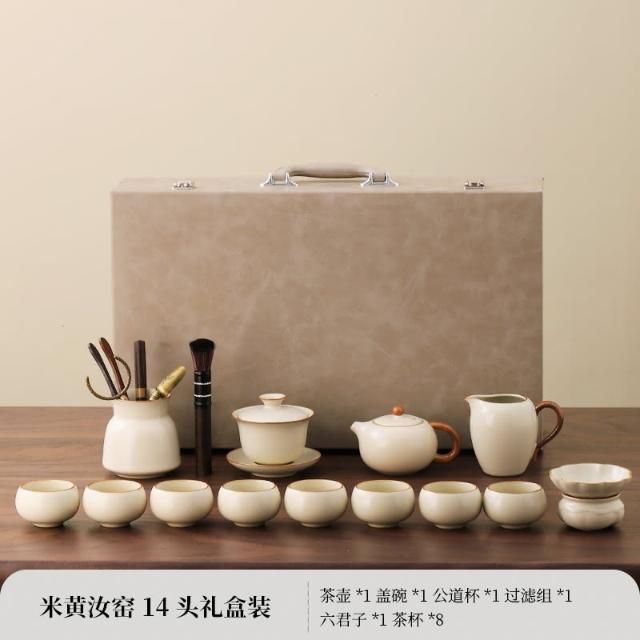 四季風家居 汝窯功夫茶具組新喝茶器家用泡茶陶瓷蓋碗茶壺茶杯整套
