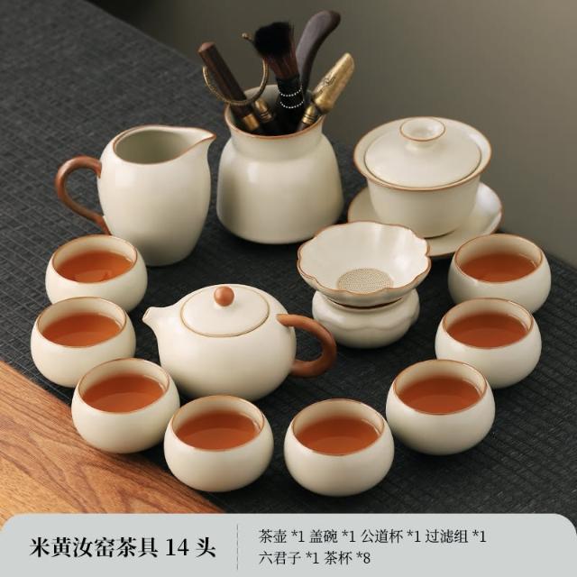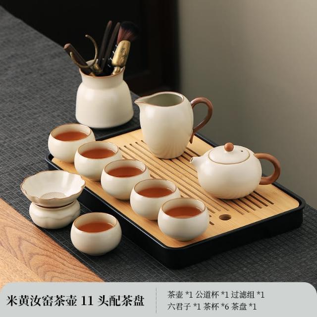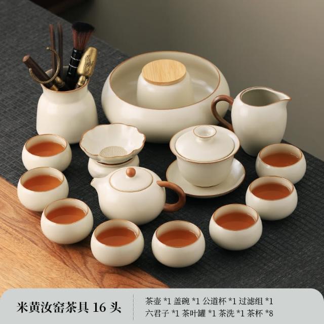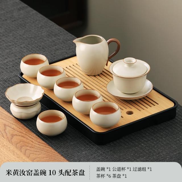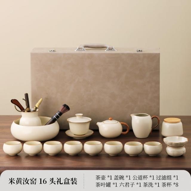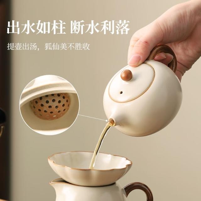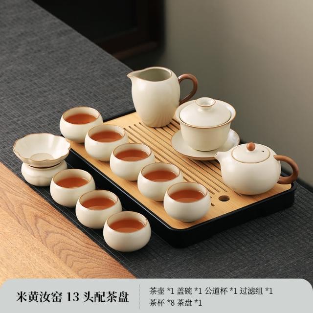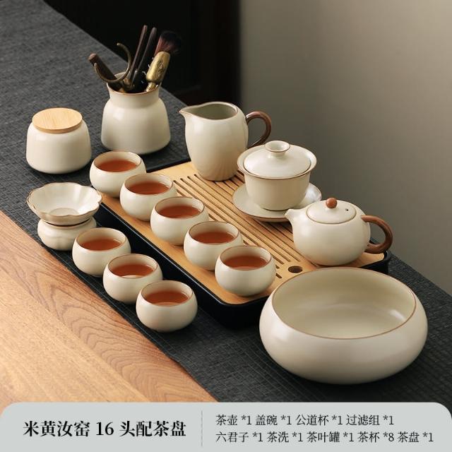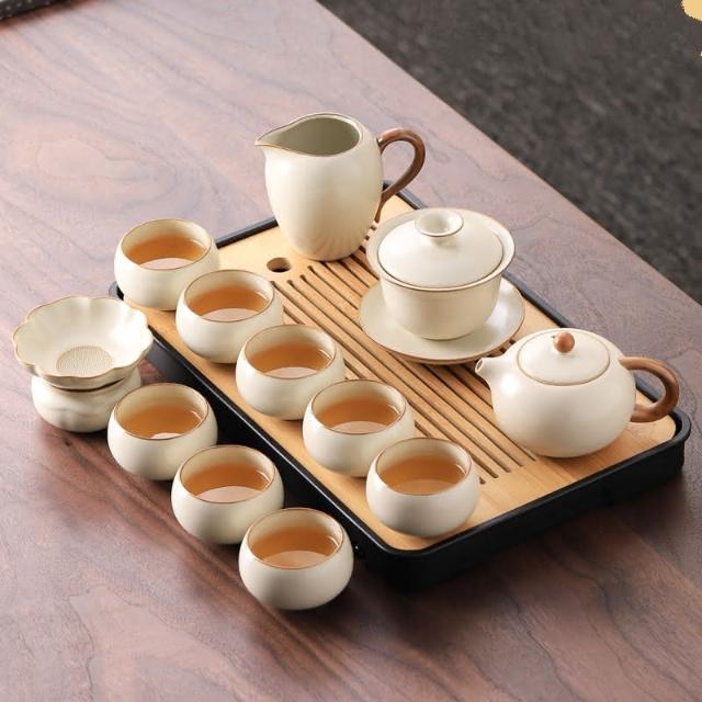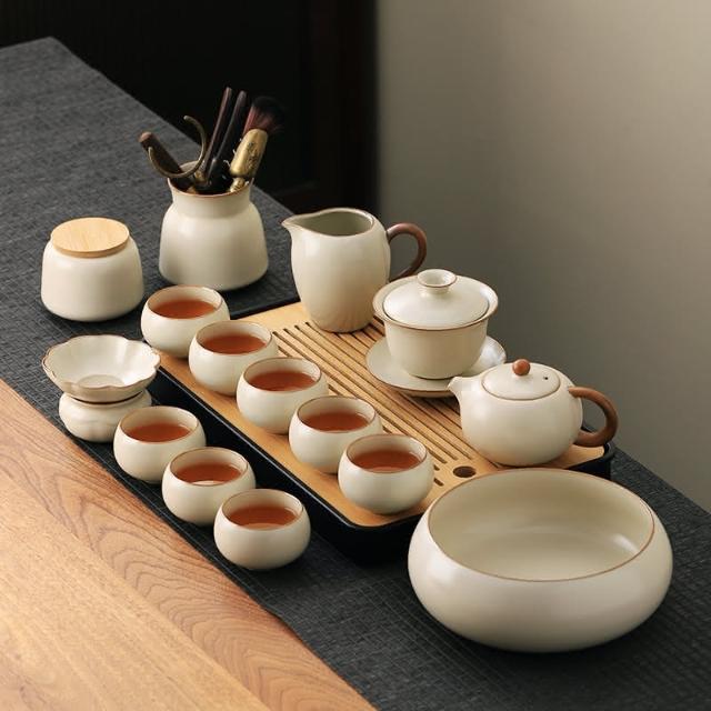 四季風家居 汝窯功夫茶具組新喝茶器家用泡茶陶瓷蓋碗茶壺茶杯整套