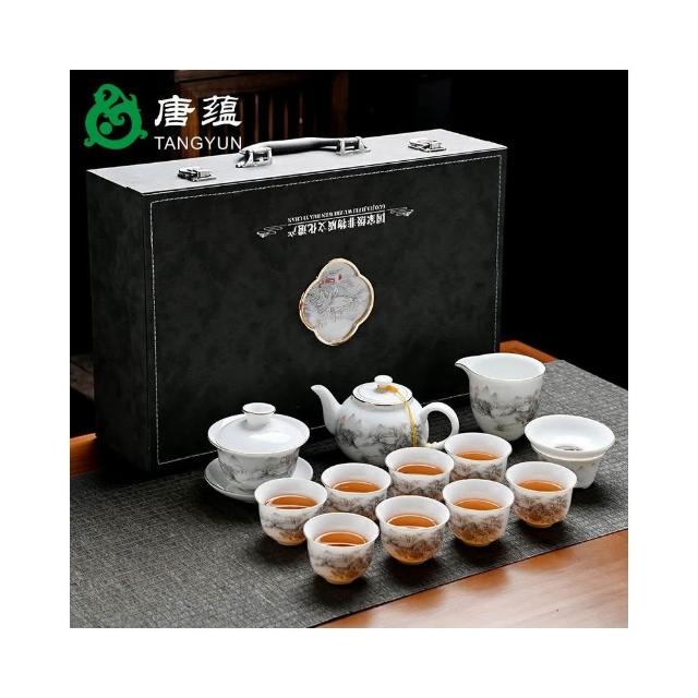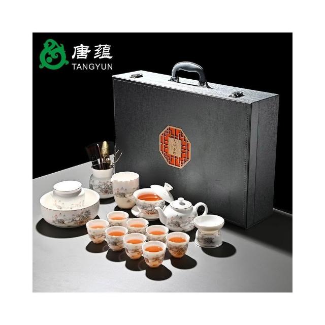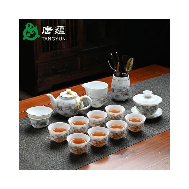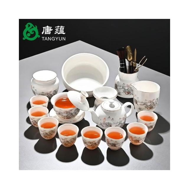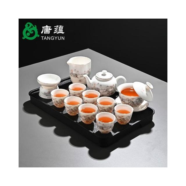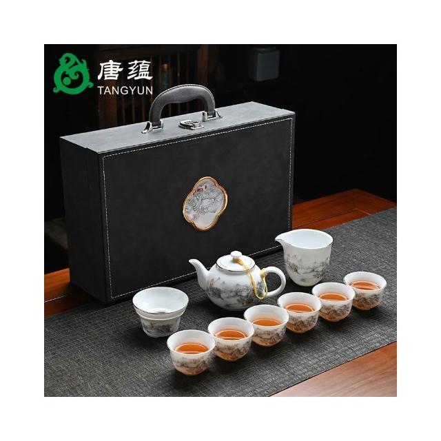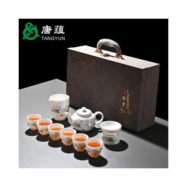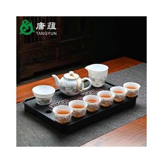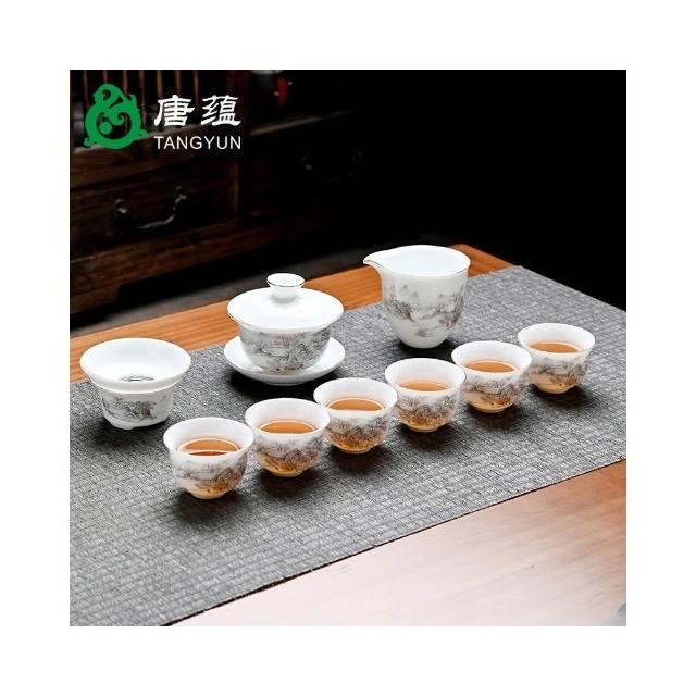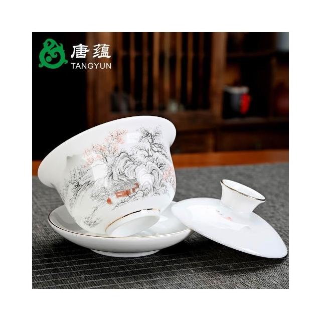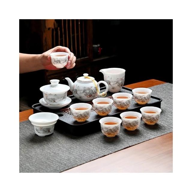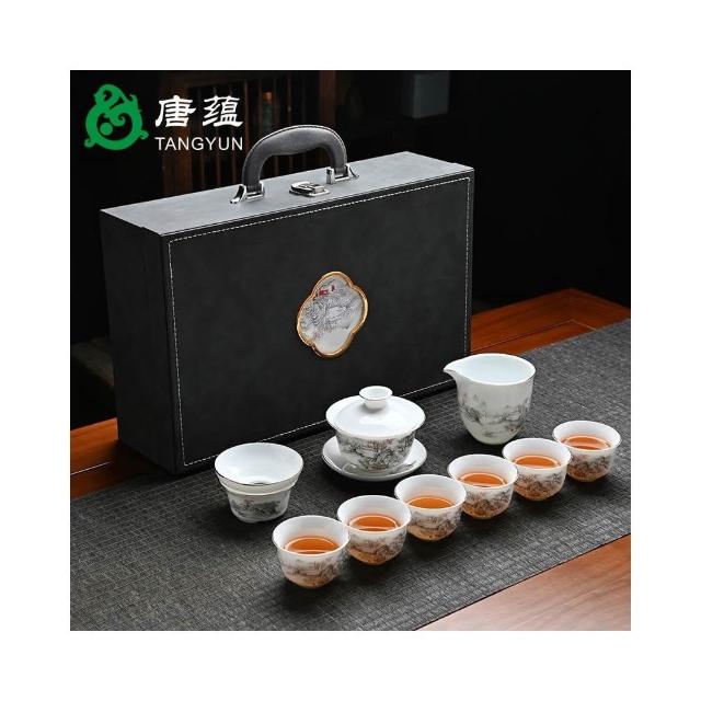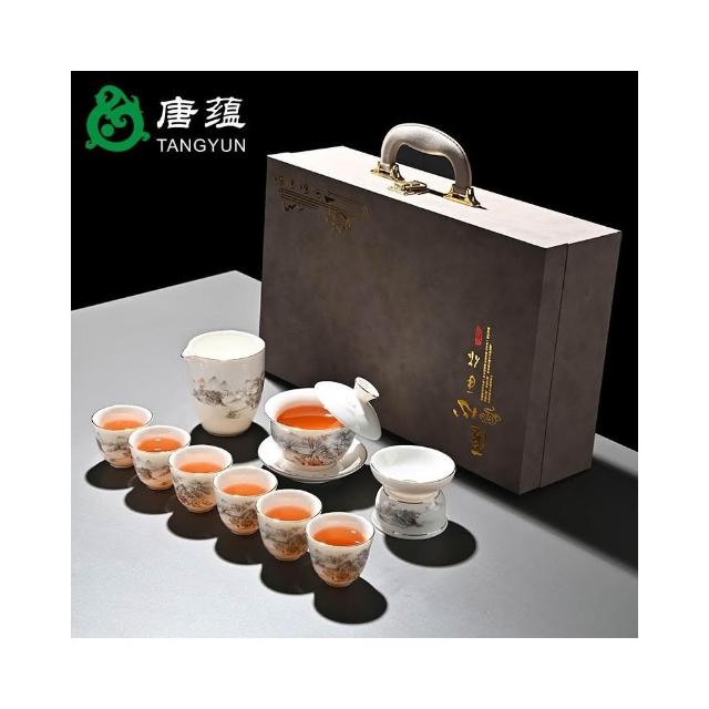 四季風家居 冰種羊脂玉茶壺功夫茶具套組家用辦公室會客陶瓷蓋碗茶杯高級禮盒