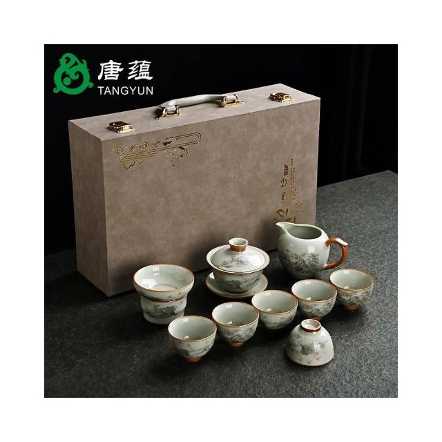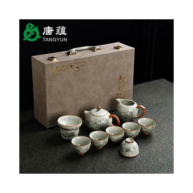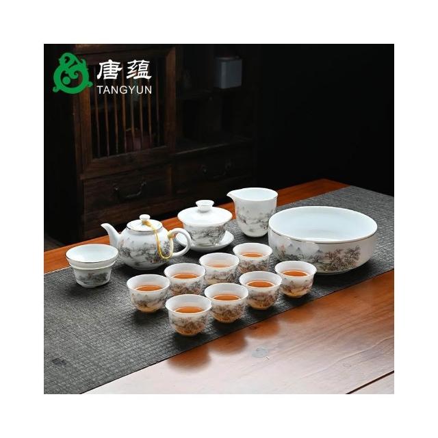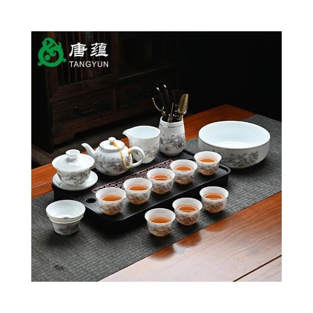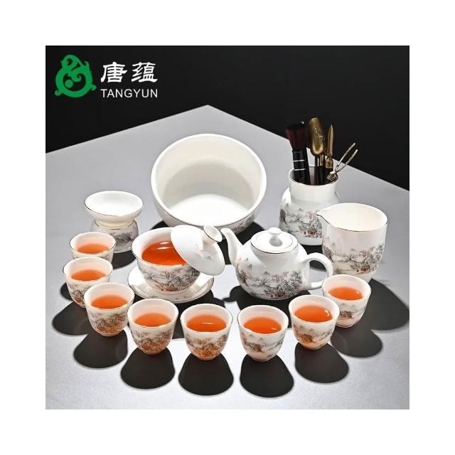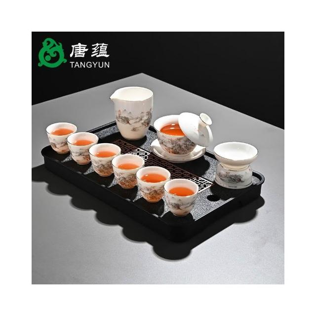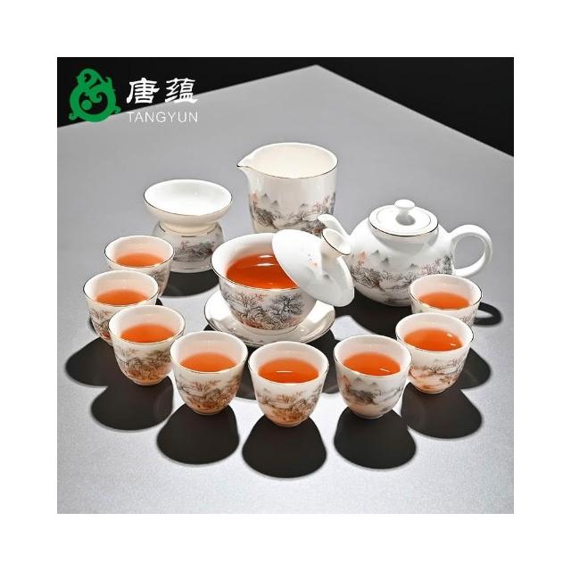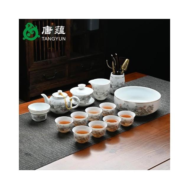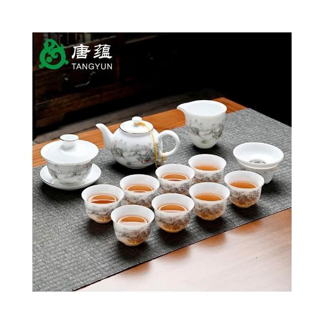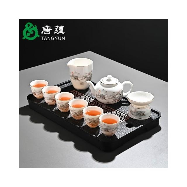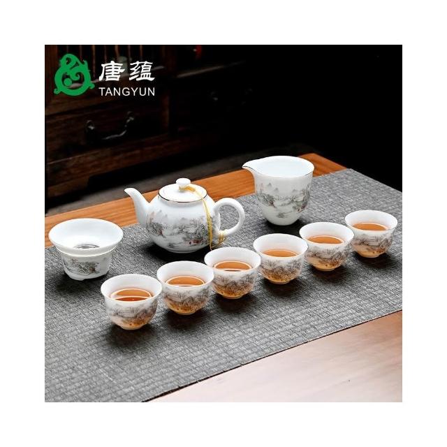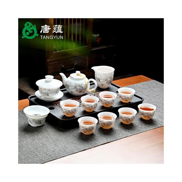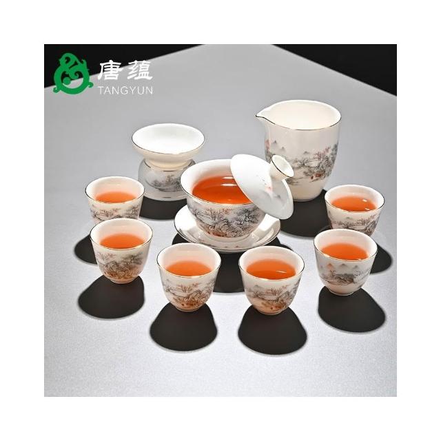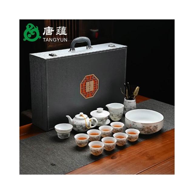 四季風家居 冰種羊脂玉茶壺功夫茶具套組家用辦公室會客陶瓷蓋碗茶杯高級禮盒