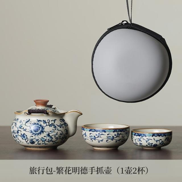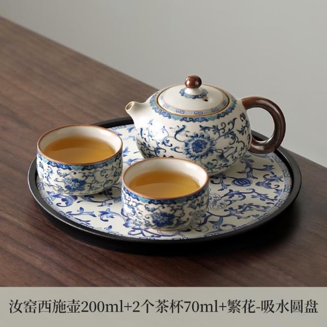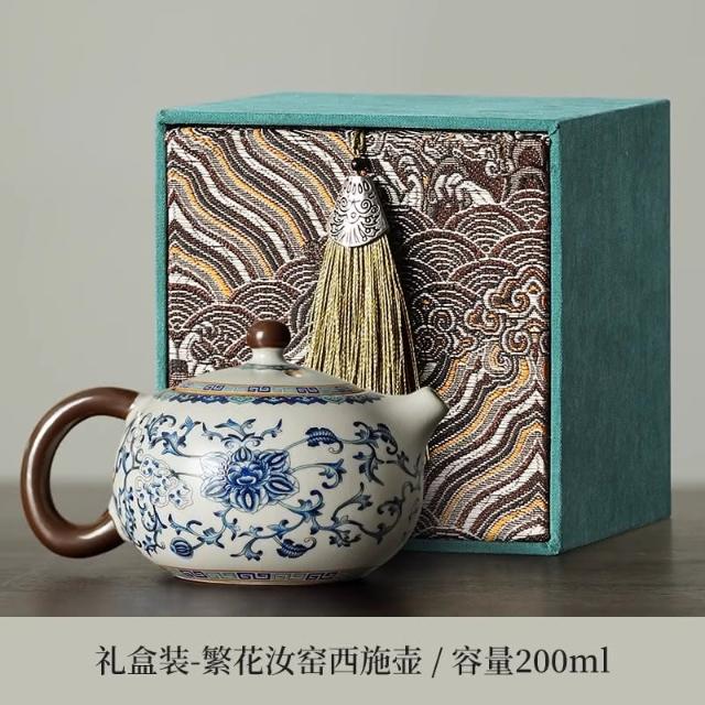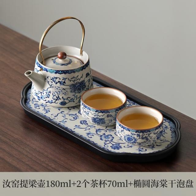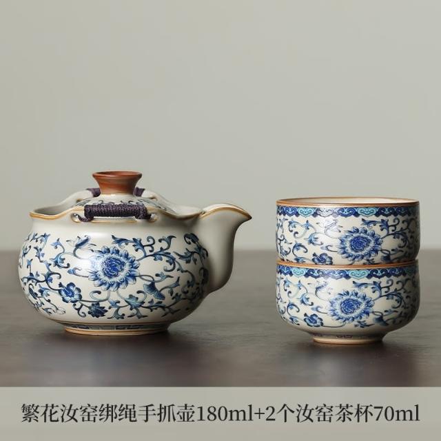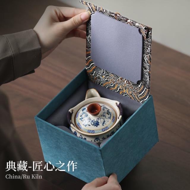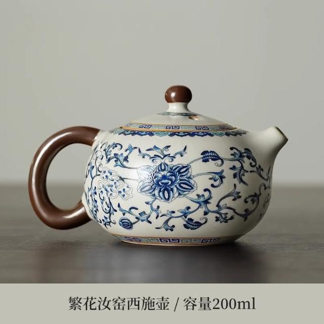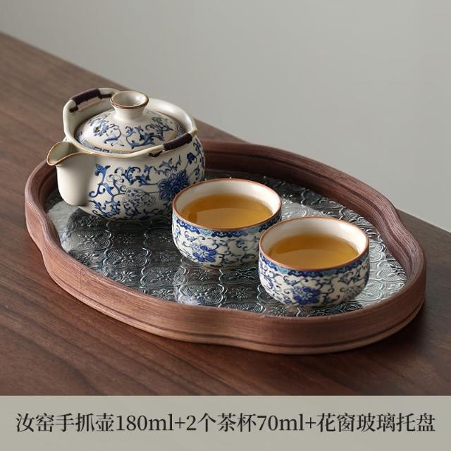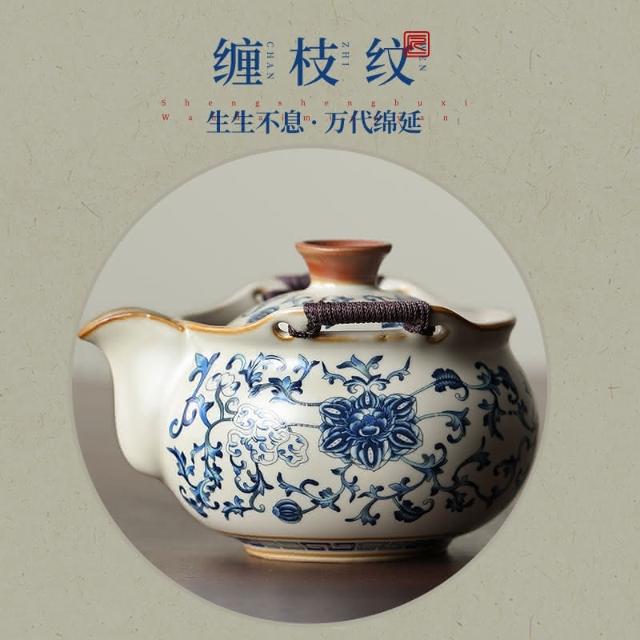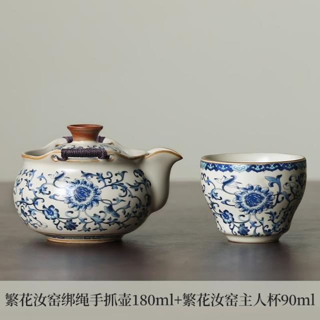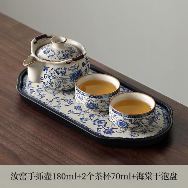 四季風家居 青花汝窯手抓壺蓋碗茶杯高檔大號防燙家用功夫茶具泡茶茶碗帶蓋