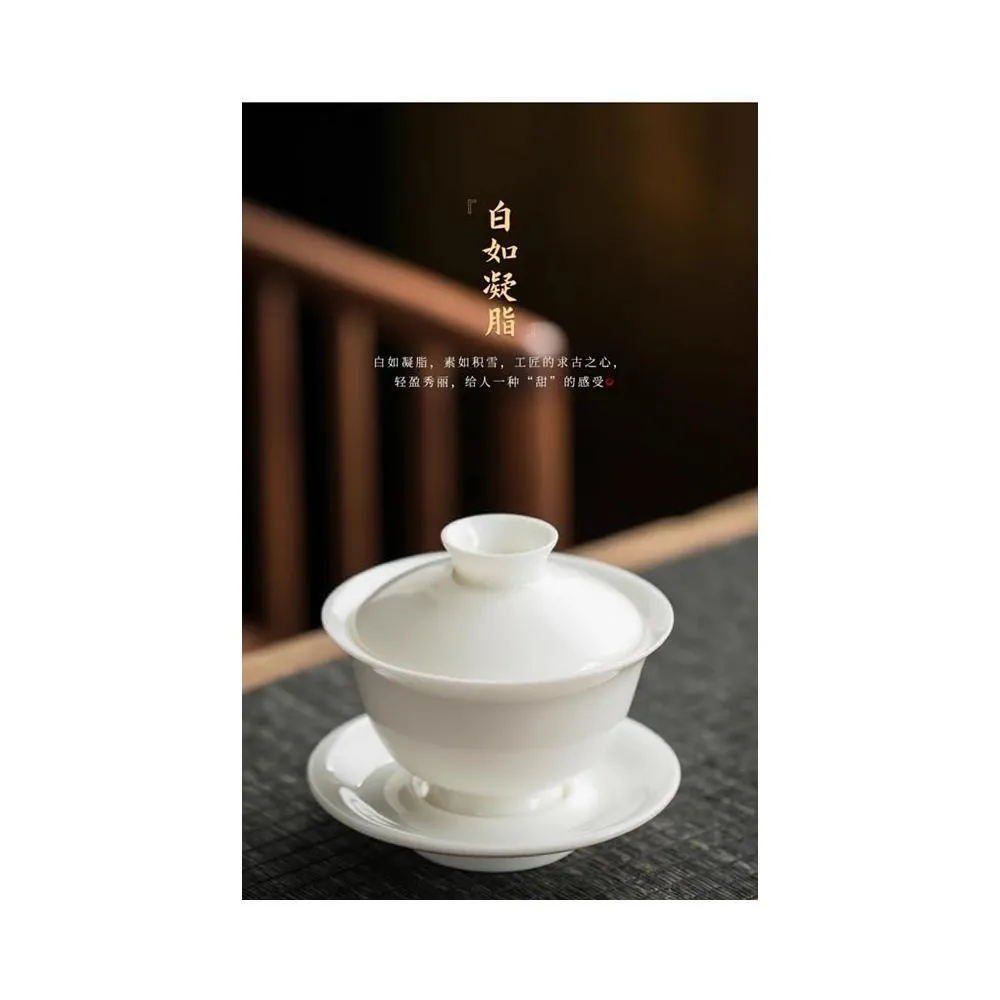 四季風家居 羊脂玉蓋碗茶杯德化白瓷茶碗帶蓋單一三隻大功夫家用茶具套裝