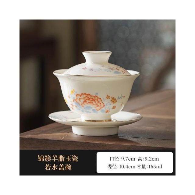 四季風家居 羊脂玉蓋碗茶杯德化白瓷茶碗帶蓋單一三隻大功夫家用茶具套裝
