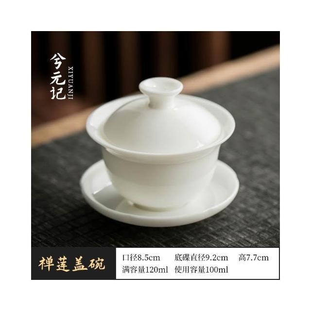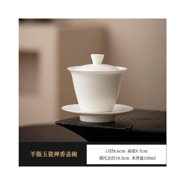 四季風家居 羊脂玉蓋碗茶杯德化白瓷茶碗帶蓋單一三隻大功夫家用茶具套裝
