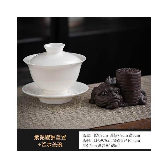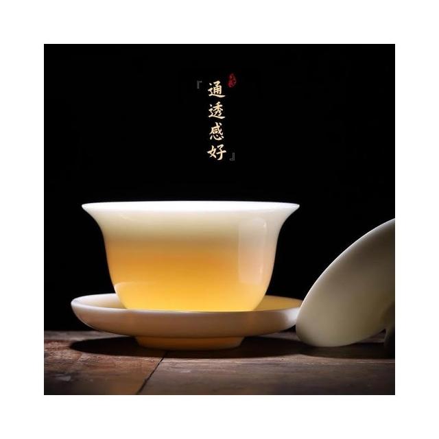 四季風家居 羊脂玉蓋碗茶杯德化白瓷茶碗帶蓋單一三隻大功夫家用茶具套裝