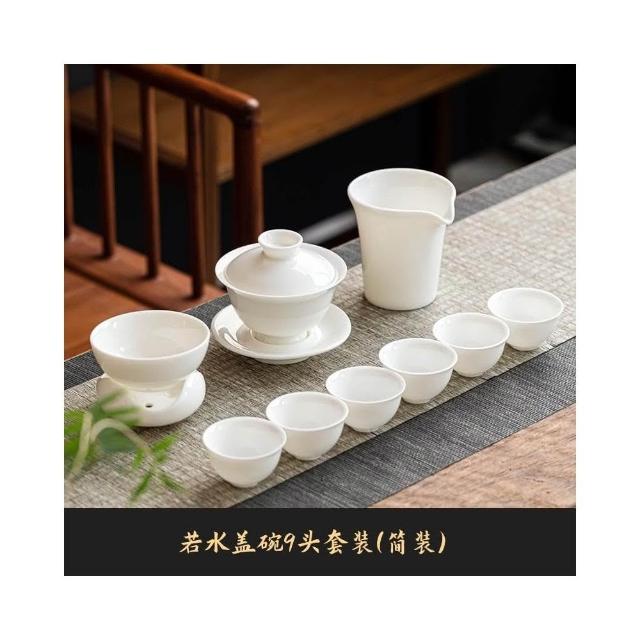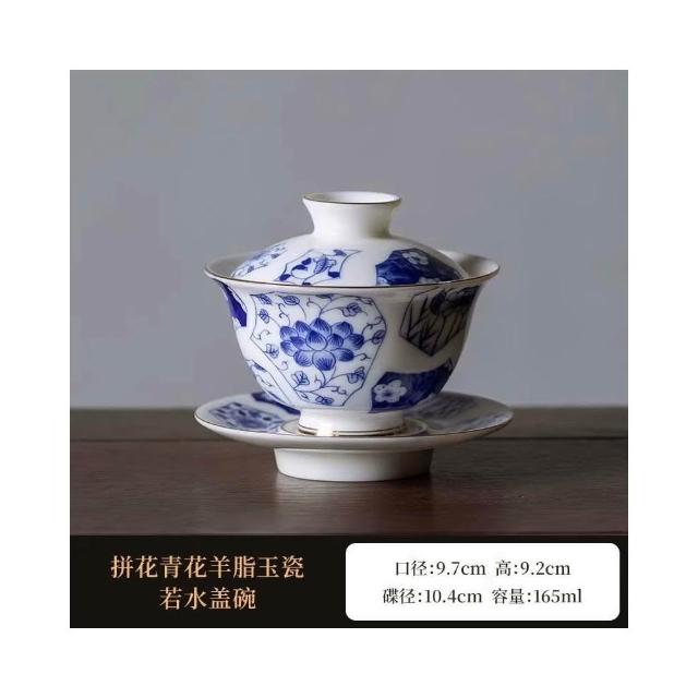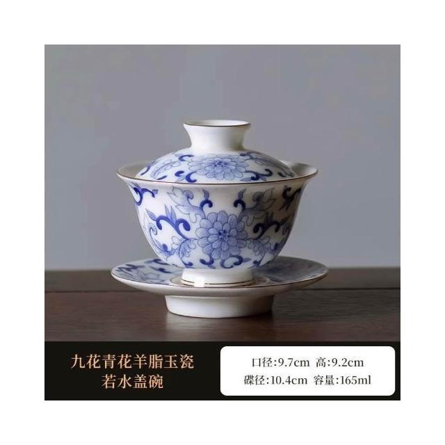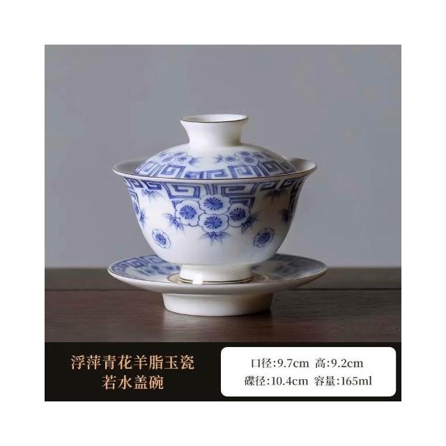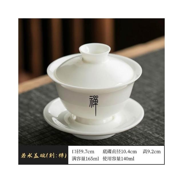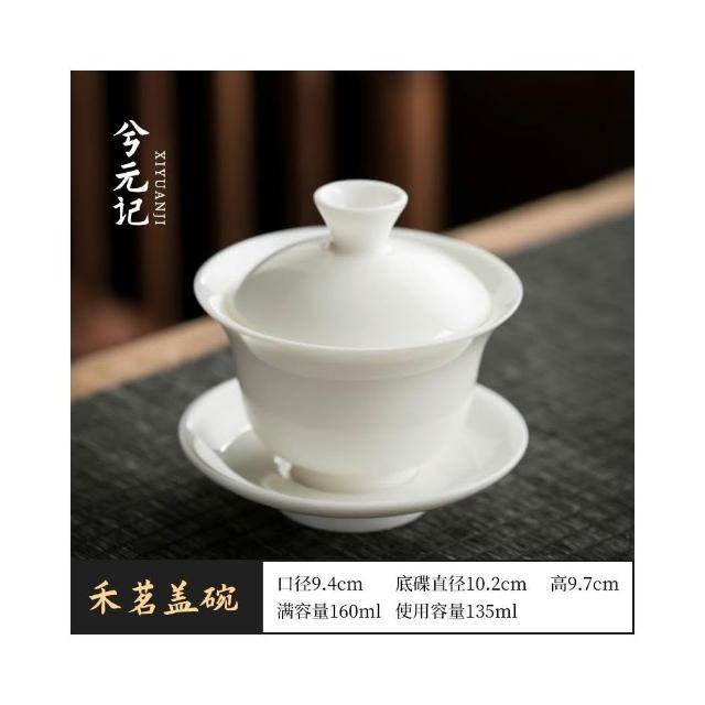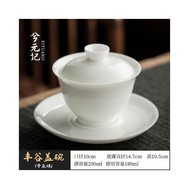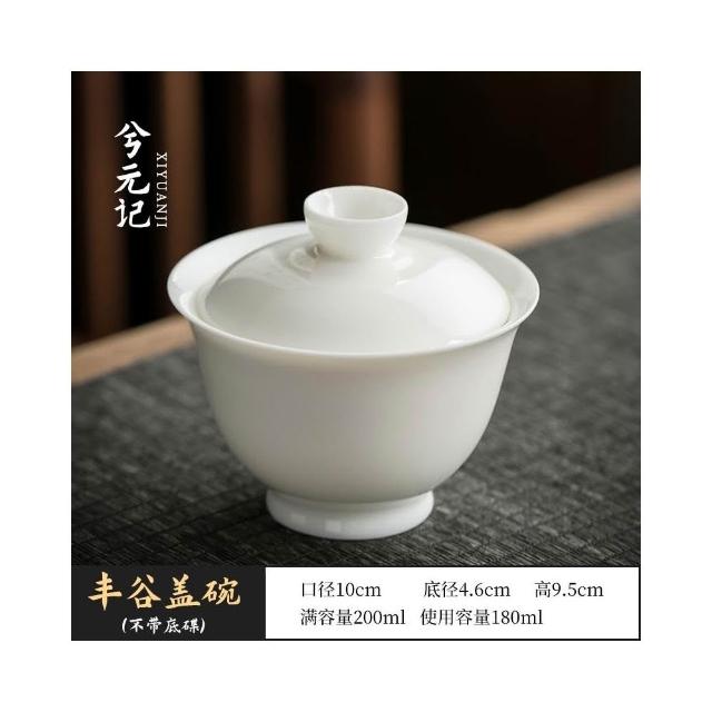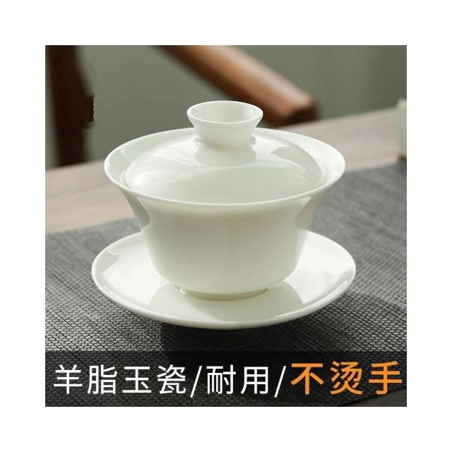 四季風家居 羊脂玉蓋碗茶杯德化白瓷茶碗帶蓋單一三隻大功夫家用茶具套裝