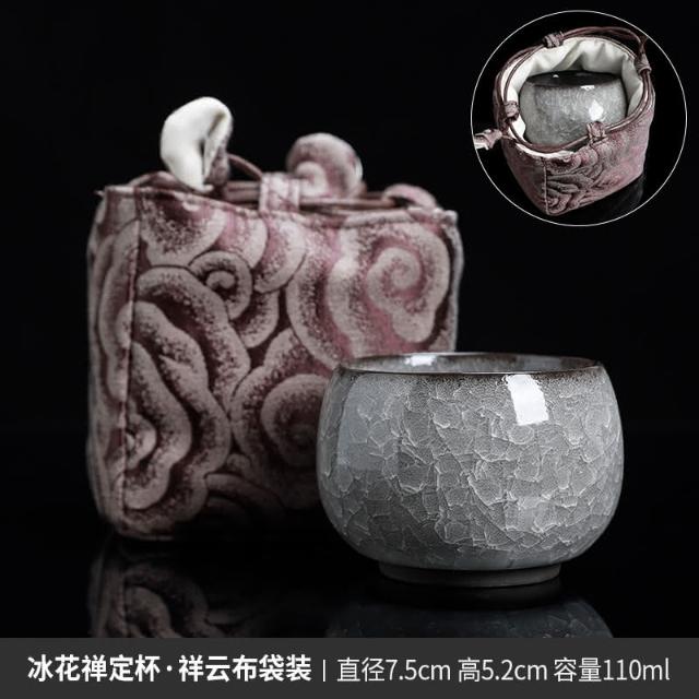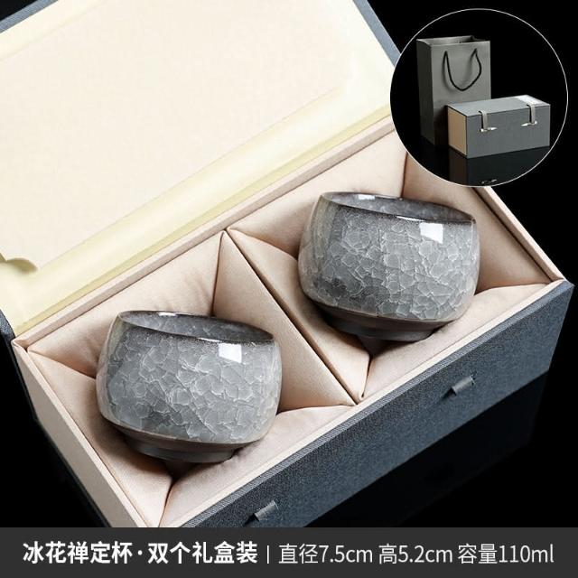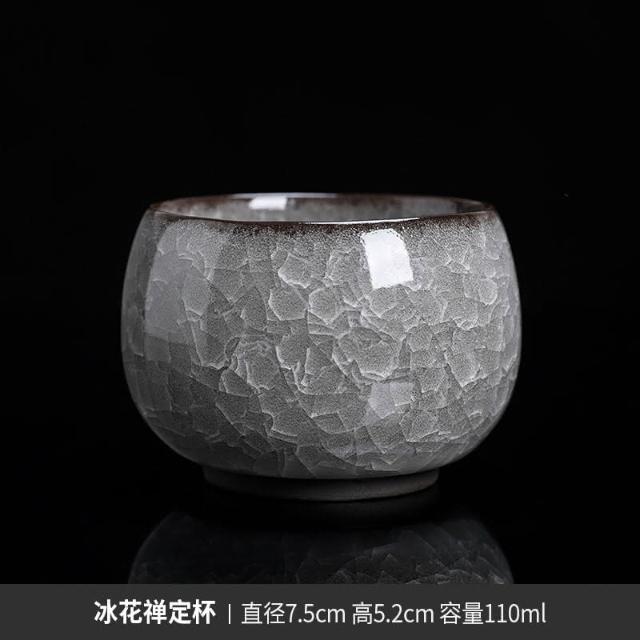 四季風家居 黑冰花丨主人杯單杯開片茶杯茶盞高級男士功夫陶瓷個人專用品茗杯