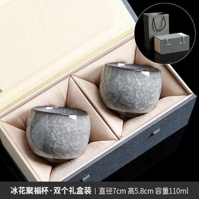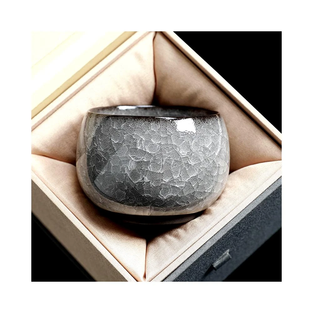四季風家居 黑冰花丨主人杯單杯開片茶杯茶盞高級男士功夫陶瓷個人專用品茗杯