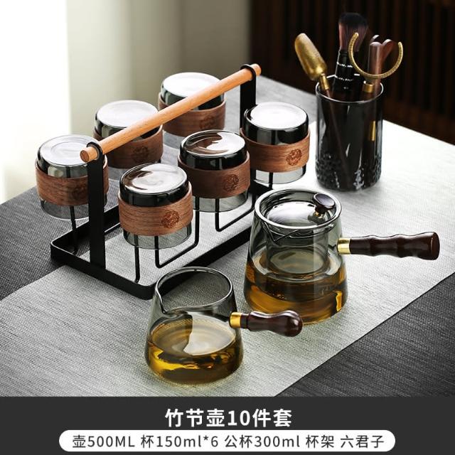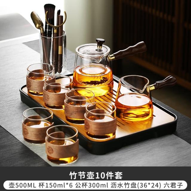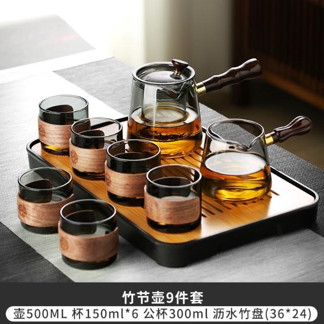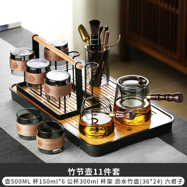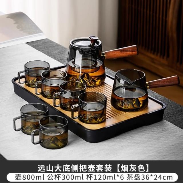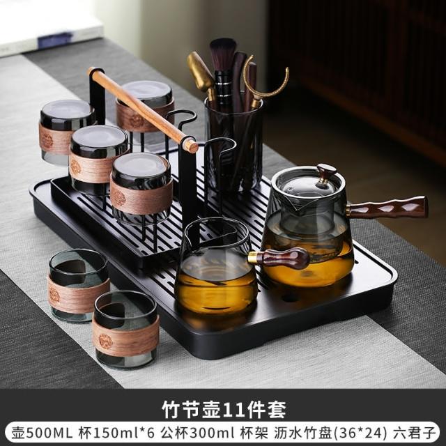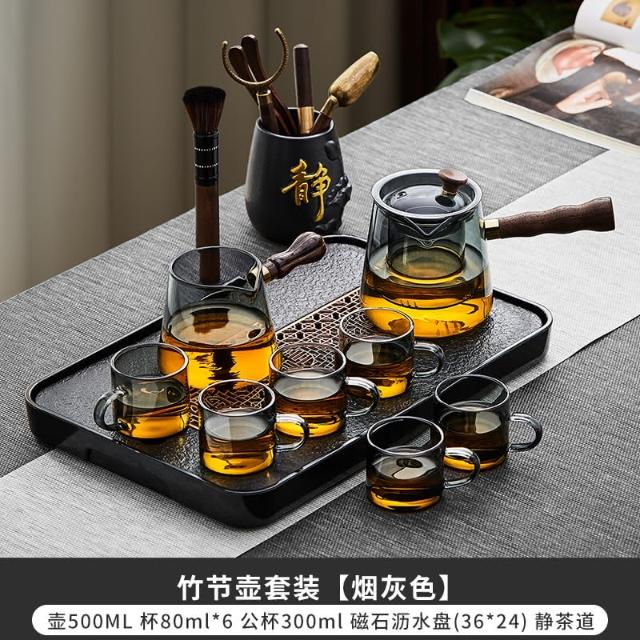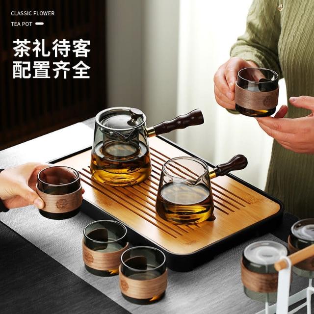 四季風家居 玻璃茶具組家用茶盤辦公室客廳喝茶會客功夫茶杯高級耐熱泡茶壺