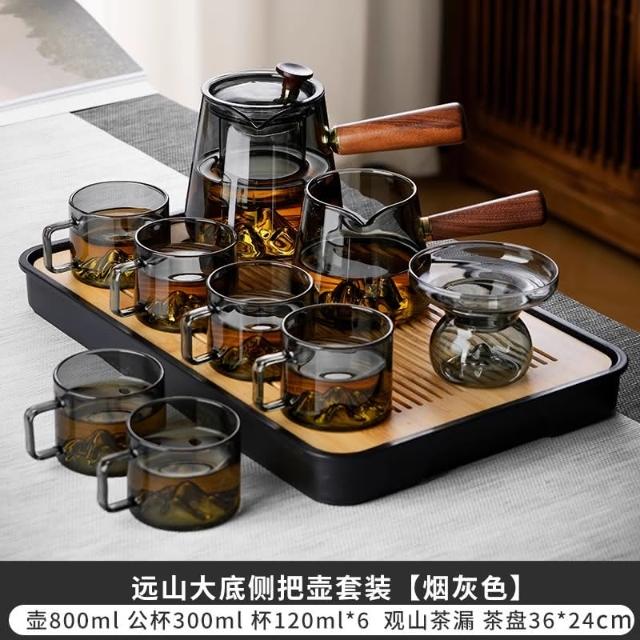 四季風家居 玻璃茶具組家用茶盤辦公室客廳喝茶會客功夫茶杯高級耐熱泡茶壺
