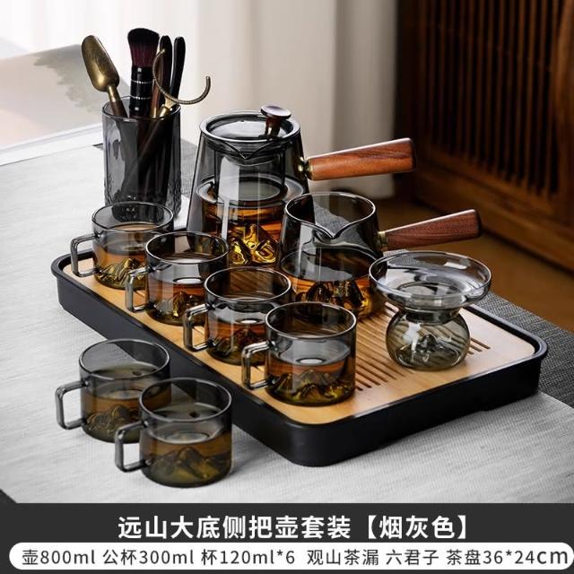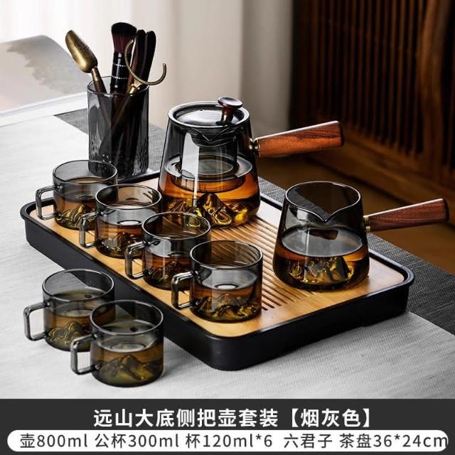 四季風家居 玻璃茶具組家用茶盤辦公室客廳喝茶會客功夫茶杯高級耐熱泡茶壺