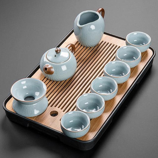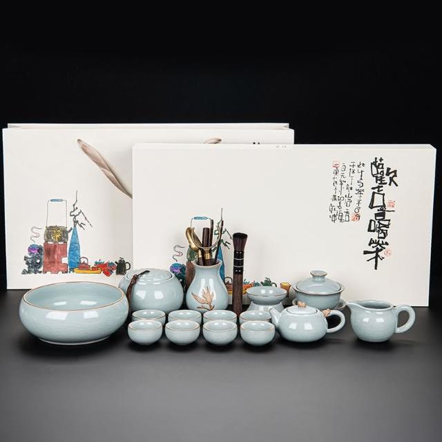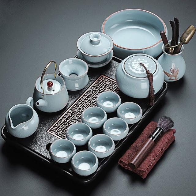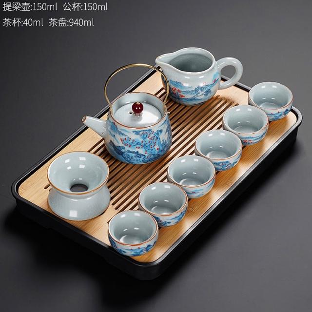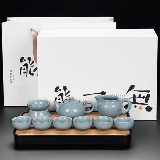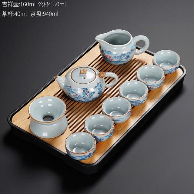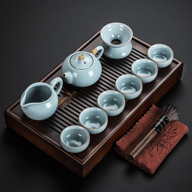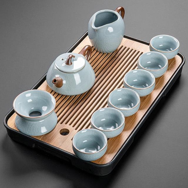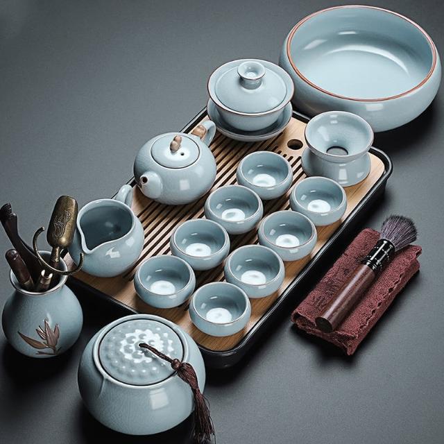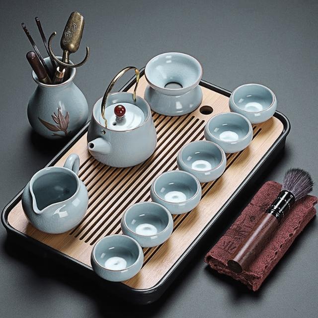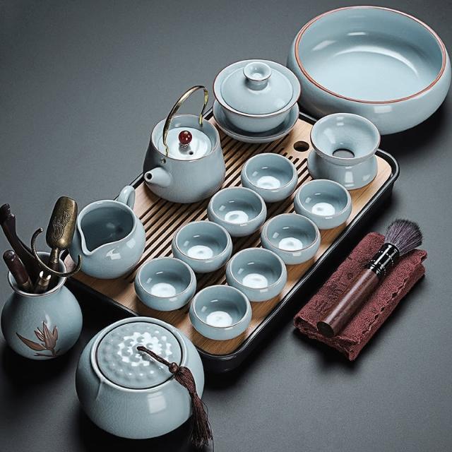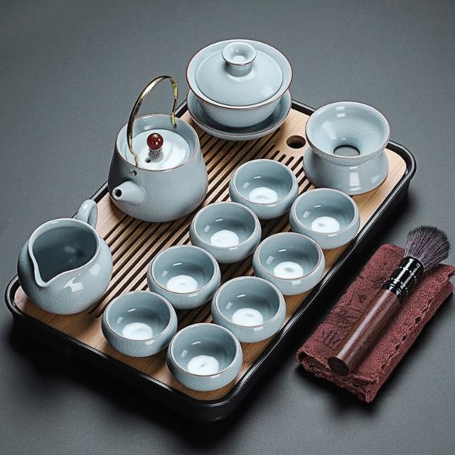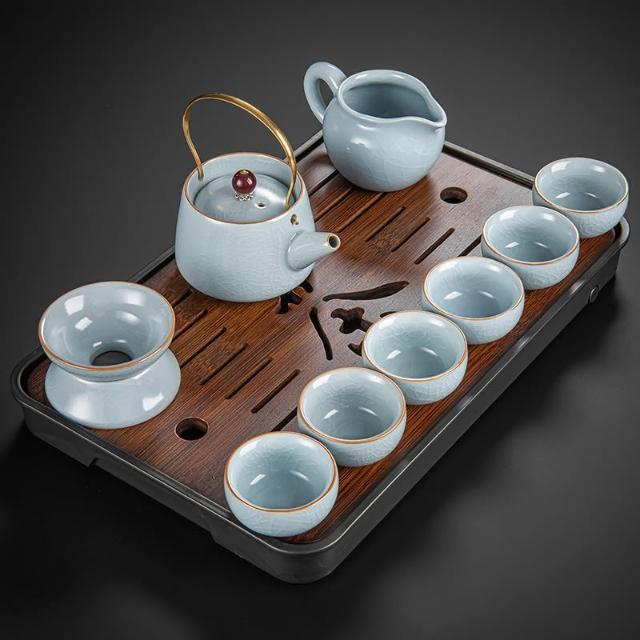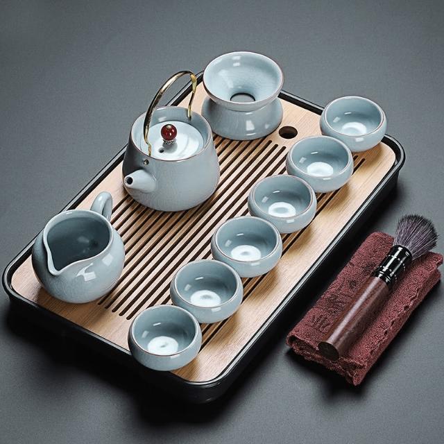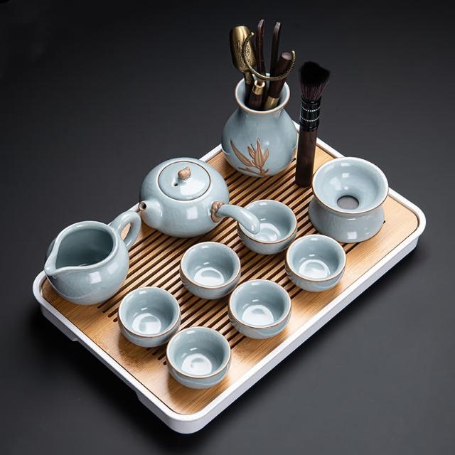 四季風家居 功夫茶具茶盤套裝家用高檔輕奢陶瓷汝窯茶壺茶杯辦公室會客