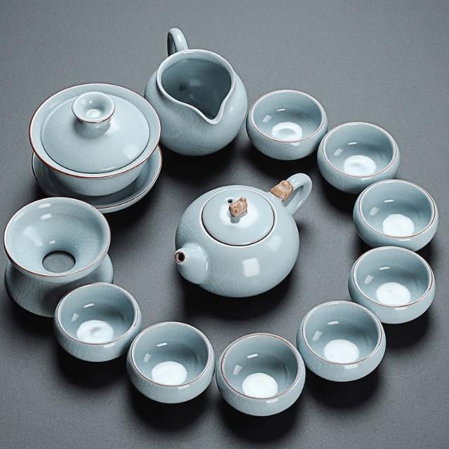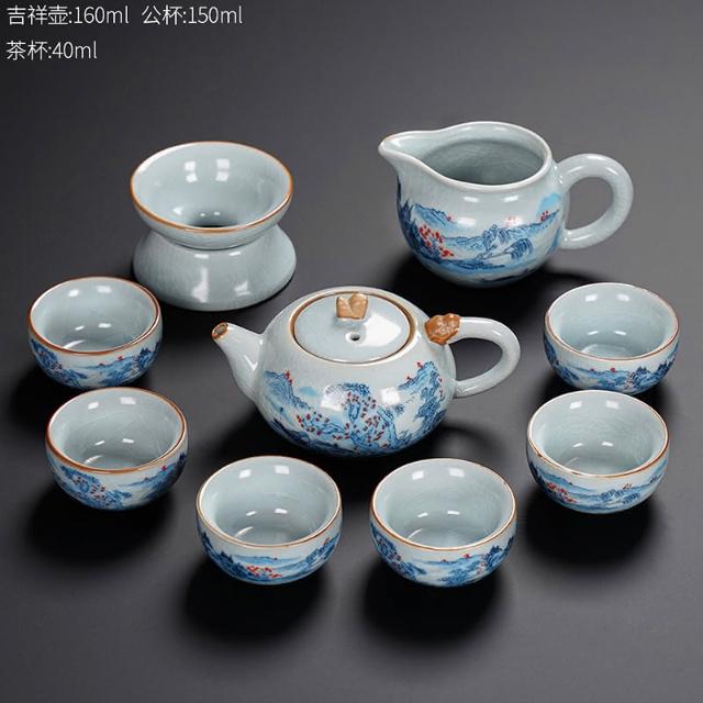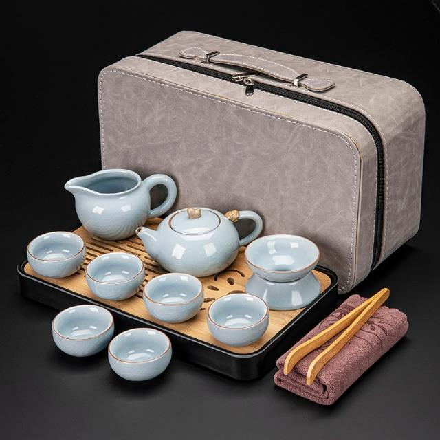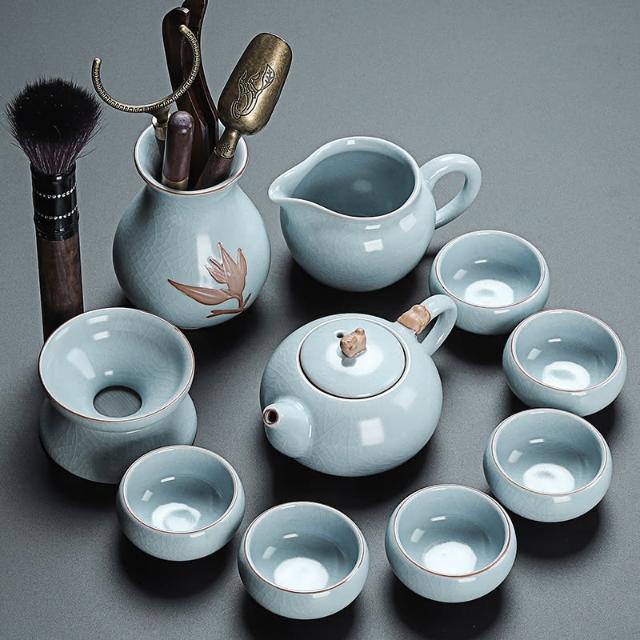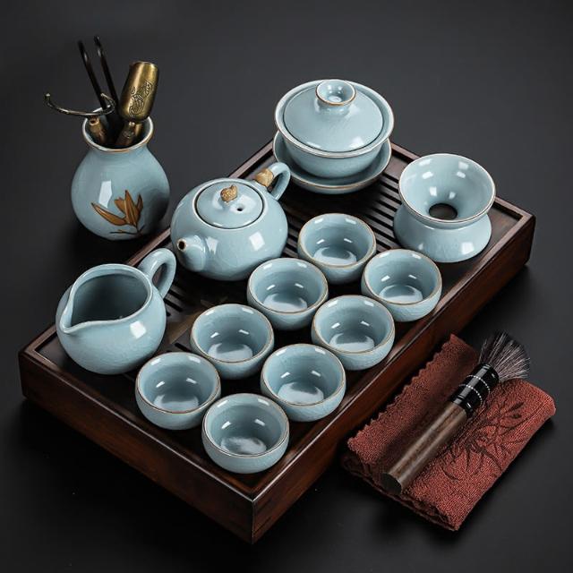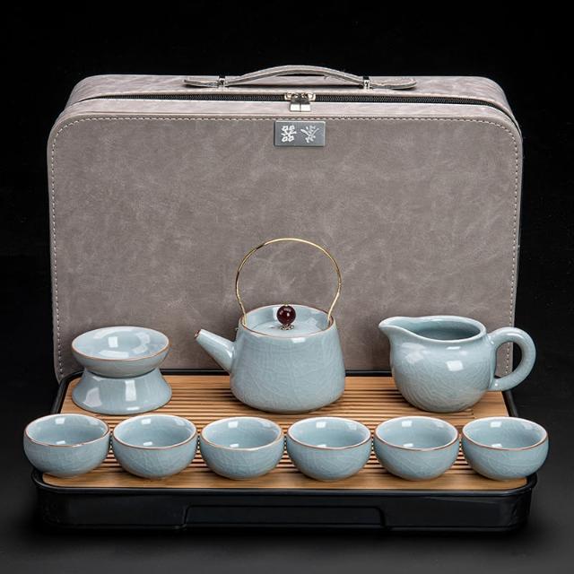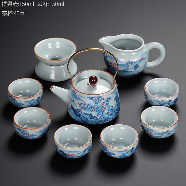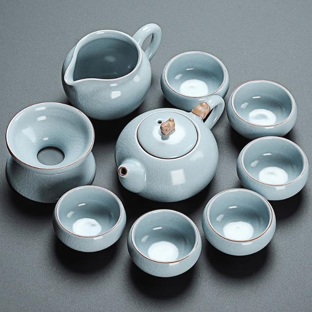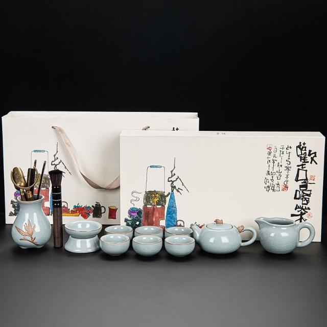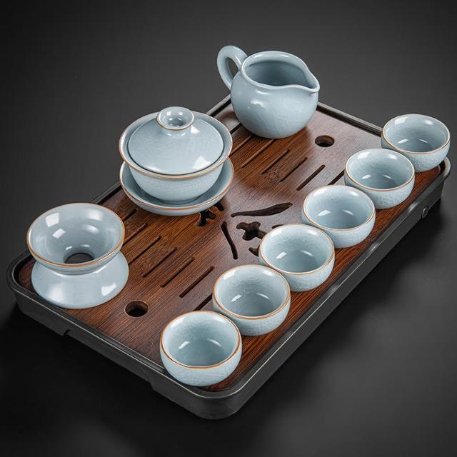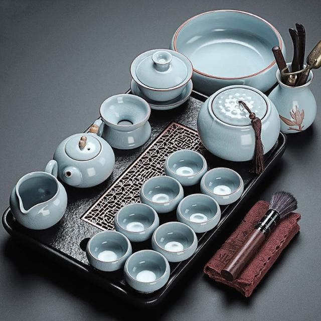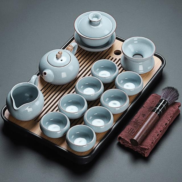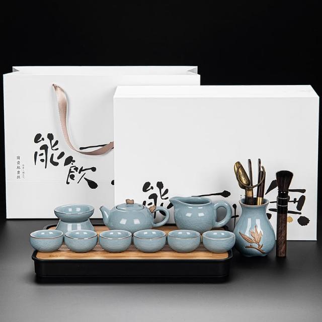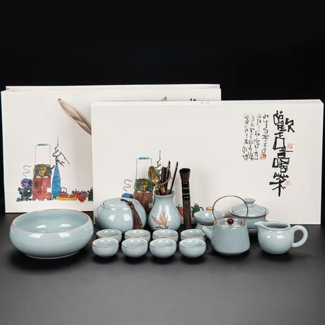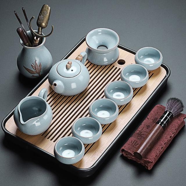 四季風家居 功夫茶具茶盤套裝家用高檔輕奢陶瓷汝窯茶壺茶杯辦公室會客