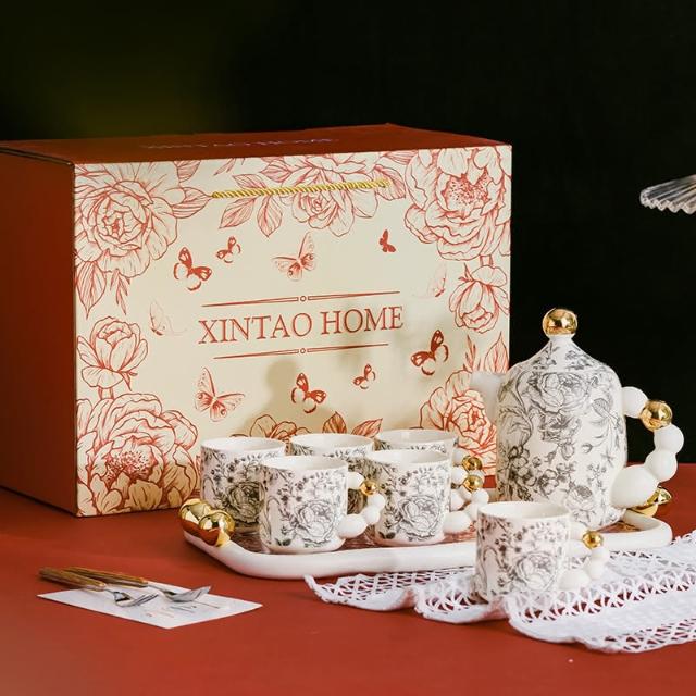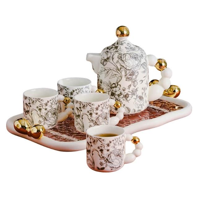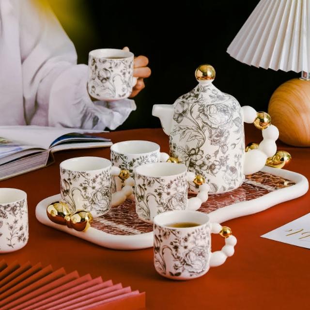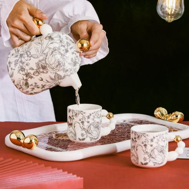 四季風家居 輕奢風陶瓷水杯家用套裝茶杯茶具茶壺客廳新婚喬遷生日禮物