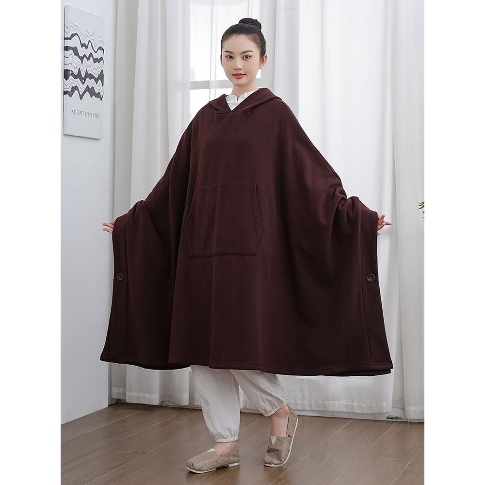 四季風家居 男女居士服搖粒絨精梳棉打坐披風觀音斗篷禪修披肩僧服秋冬款