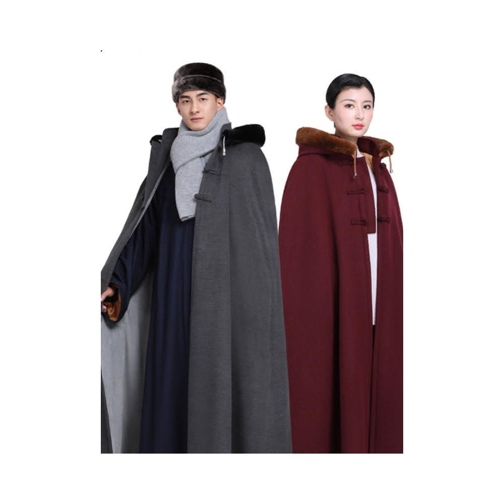 四季風家居 雙層加絨禪修打坐披風斗篷居士僧人靜坐披風帽簷毛領連帽冬季保暖