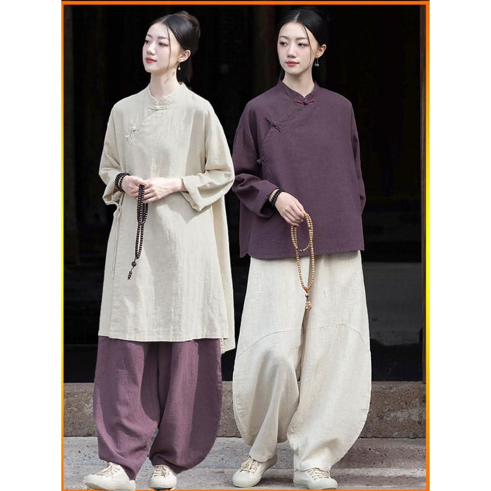 四季風家居 修行禪服女佛禪意女裝棉麻套裝素衣中式斜襟上衣寺院居士服女款