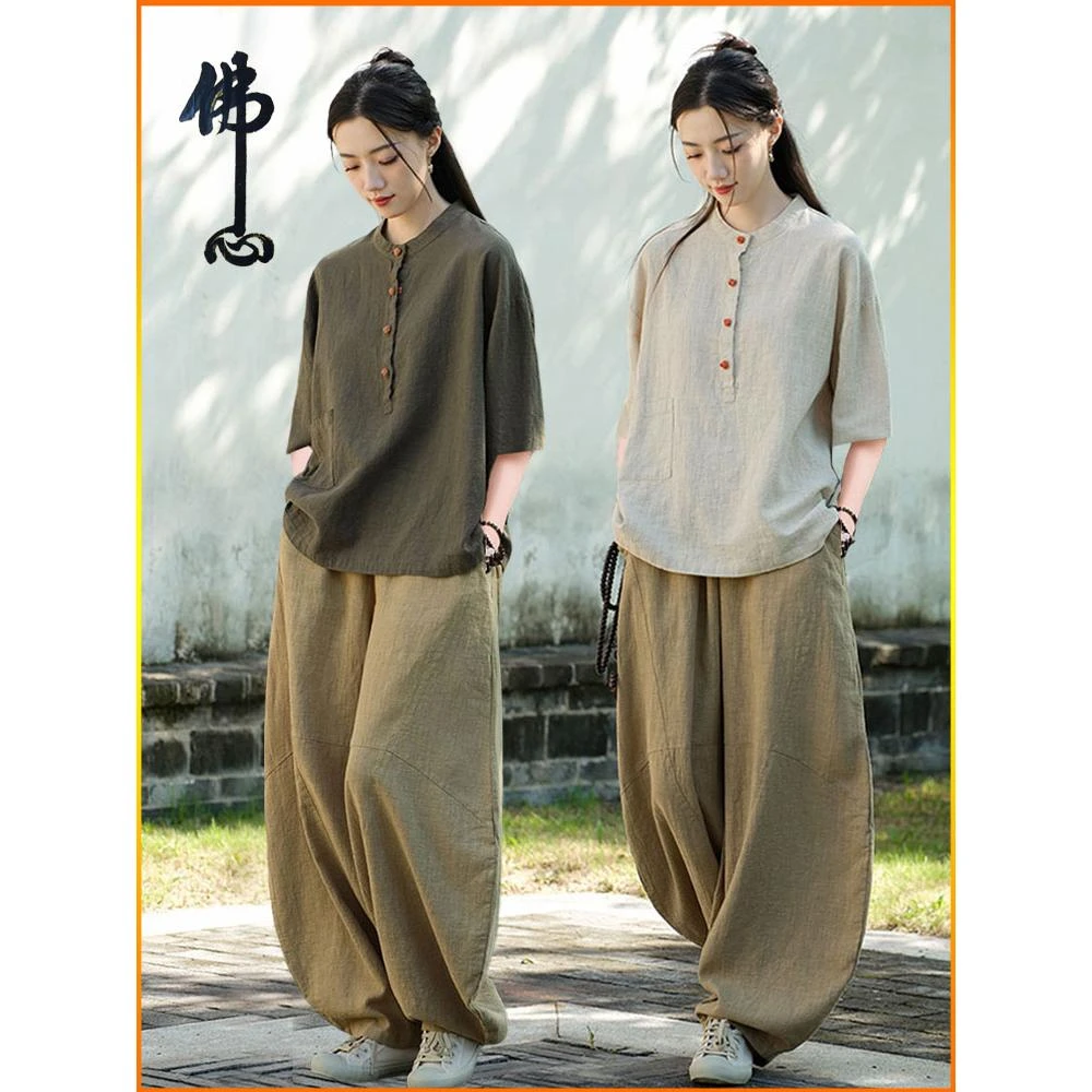 四季風家居 居士服女中式女裝棉麻盤扣上衣修行禪服中國風佛禪意素衣套裝