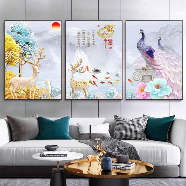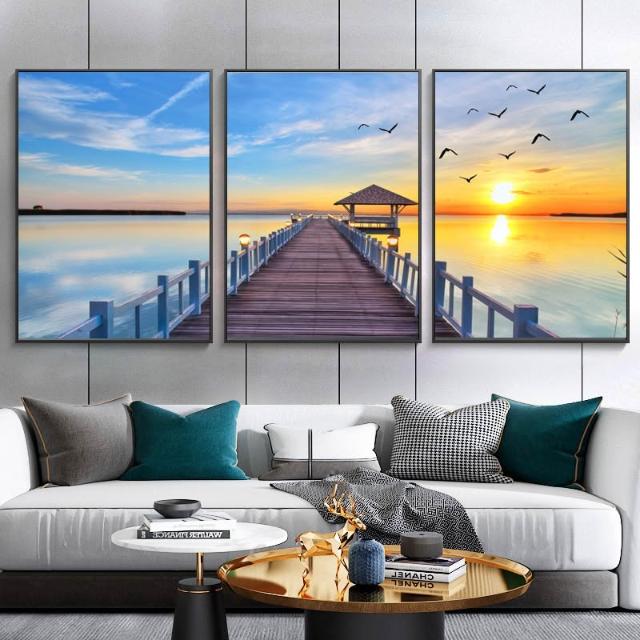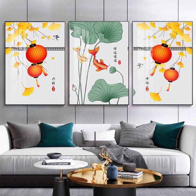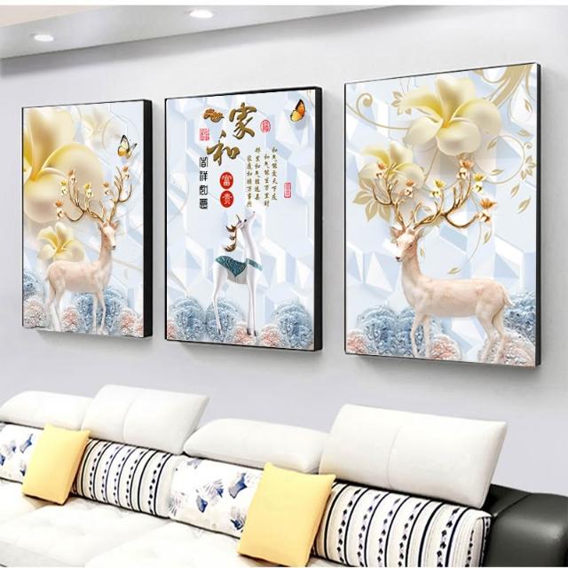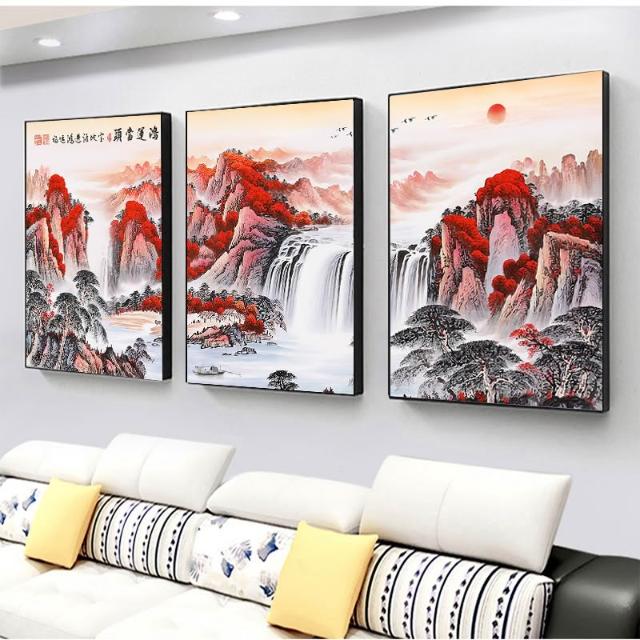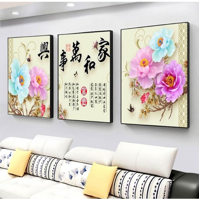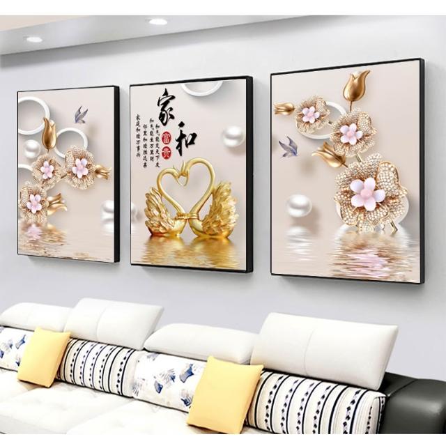 四季風精選好物 客廳裝飾畫新中式牆面掛畫餐廳壁畫沙發背景牆畫現代畫高級三聯畫