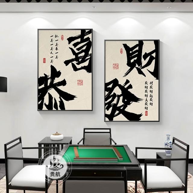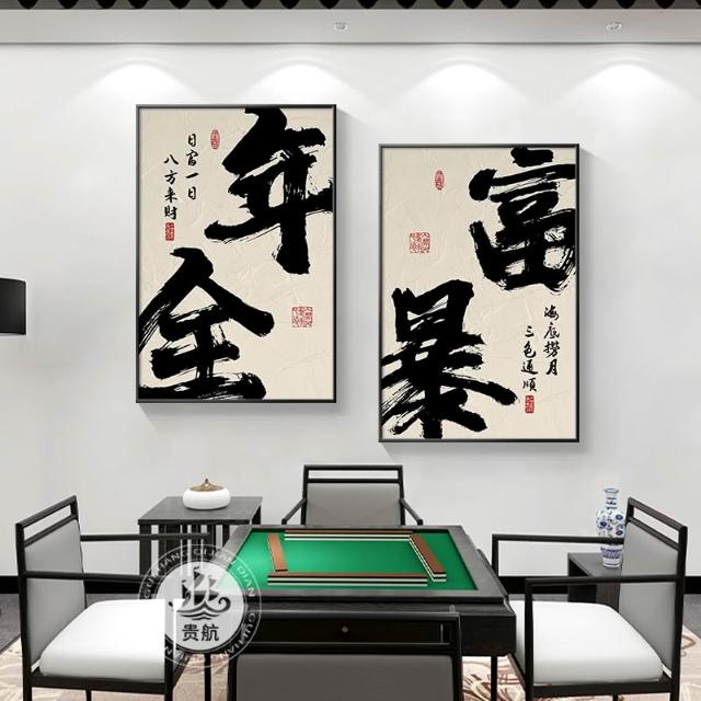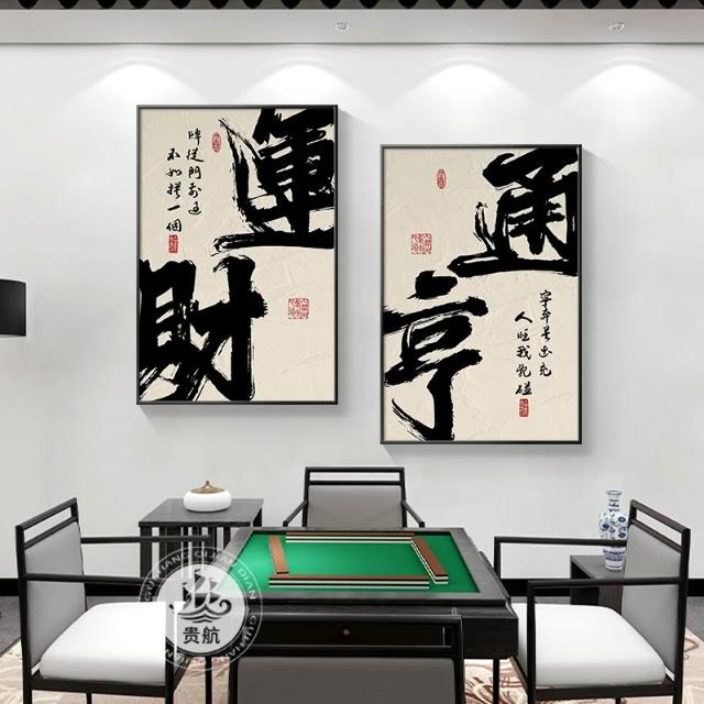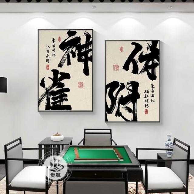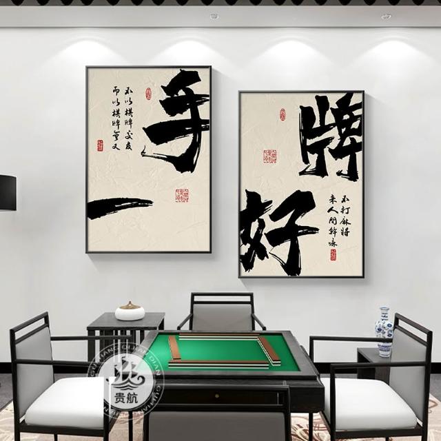 四季風精選好物 中國棋牌室裝飾畫網紅書法麻將館麻雀棋藝房壁畫茶樓餐廳飯店掛畫