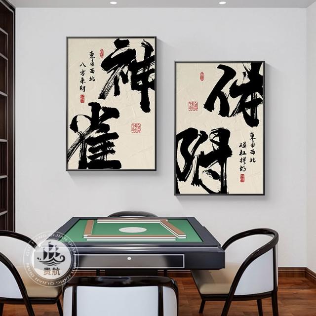 四季風精選好物 中國棋牌室裝飾畫網紅書法麻將館麻雀棋藝房壁畫茶樓餐廳飯店掛畫