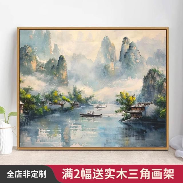 四季風精選好物 中式山水風景數位油畫diy手繪畫畫填色高級感丙烯油彩塗色填充畫